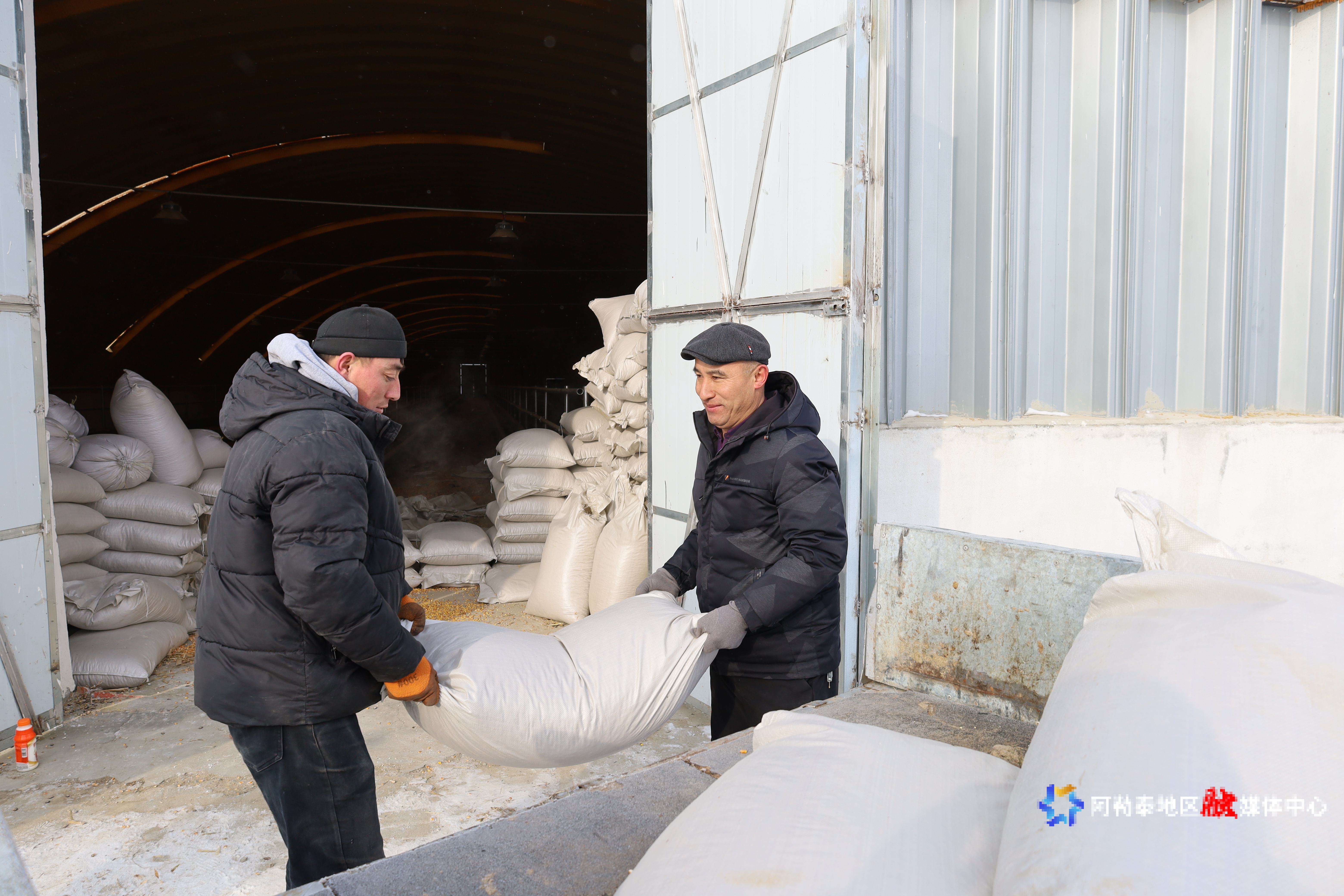 喀拉希力克乡发展服务中心主任哈那提·热斯马说:“今天,我们领到了9吨饲草料。回去后,我们将迅速组织村干部,把这些饲草料发放给18户养殖户。”