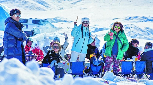 当日,阿勒泰市阿苇滩镇雪都村组织36名游客在该牧场开启一场冬日之旅,游客体验了雪地火锅、户外骑射和篝火晚会等活动。□库奋·尼格买提摄