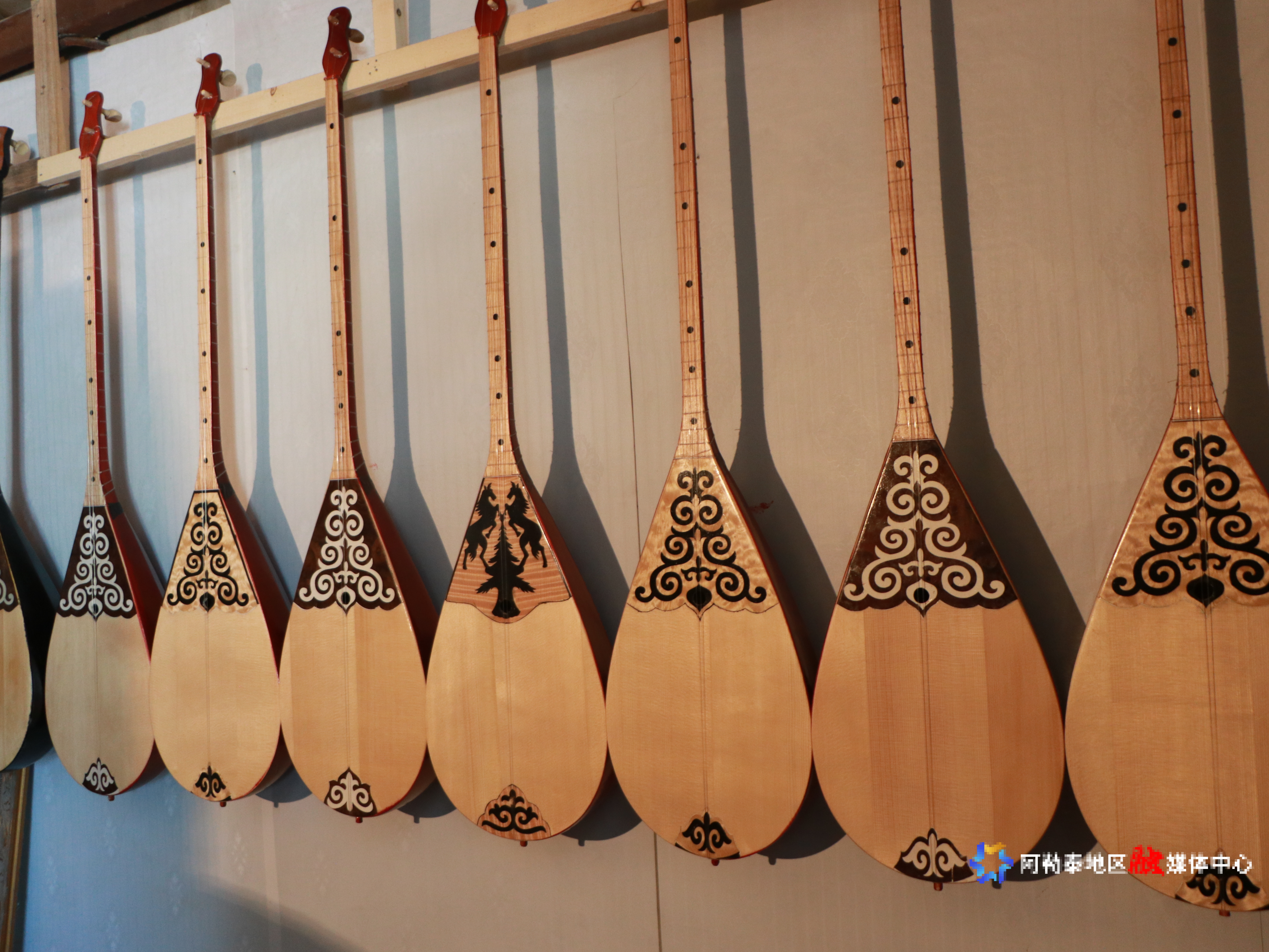 经过五年的努力,巴合提别克·库曼终于掌握了这门技艺,还创新了传统的骨木镶嵌工艺,制作的冬不拉音色优美、做工精细,深受大家喜爱。