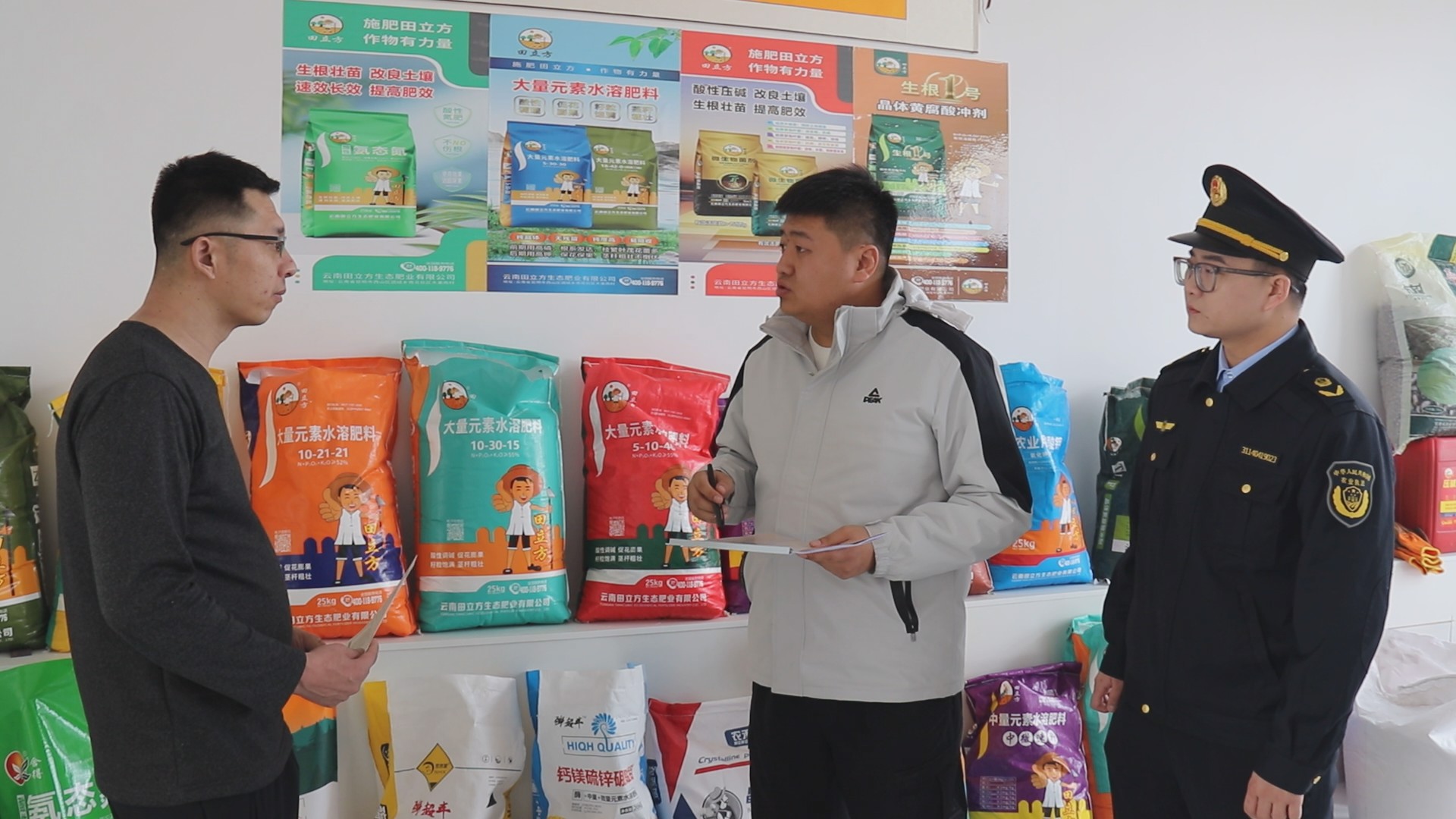 福海县相关部门工作人员走进辖区各农资售卖店进行实地检查。