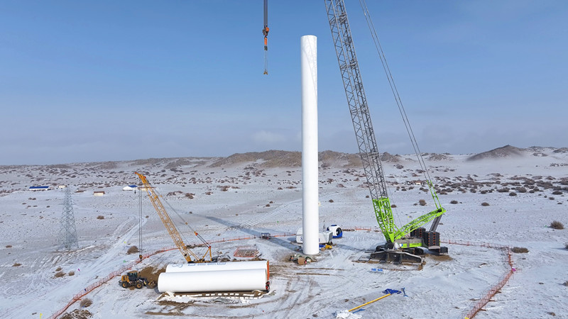 施工现场,随着风机塔筒在起重吊装机械的助力下冉冉竖立,原本寂静的戈壁荒滩,在阵阵机械的轰鸣声中,再次奏响了布尔津县大抓清洁能源建设的最强音。