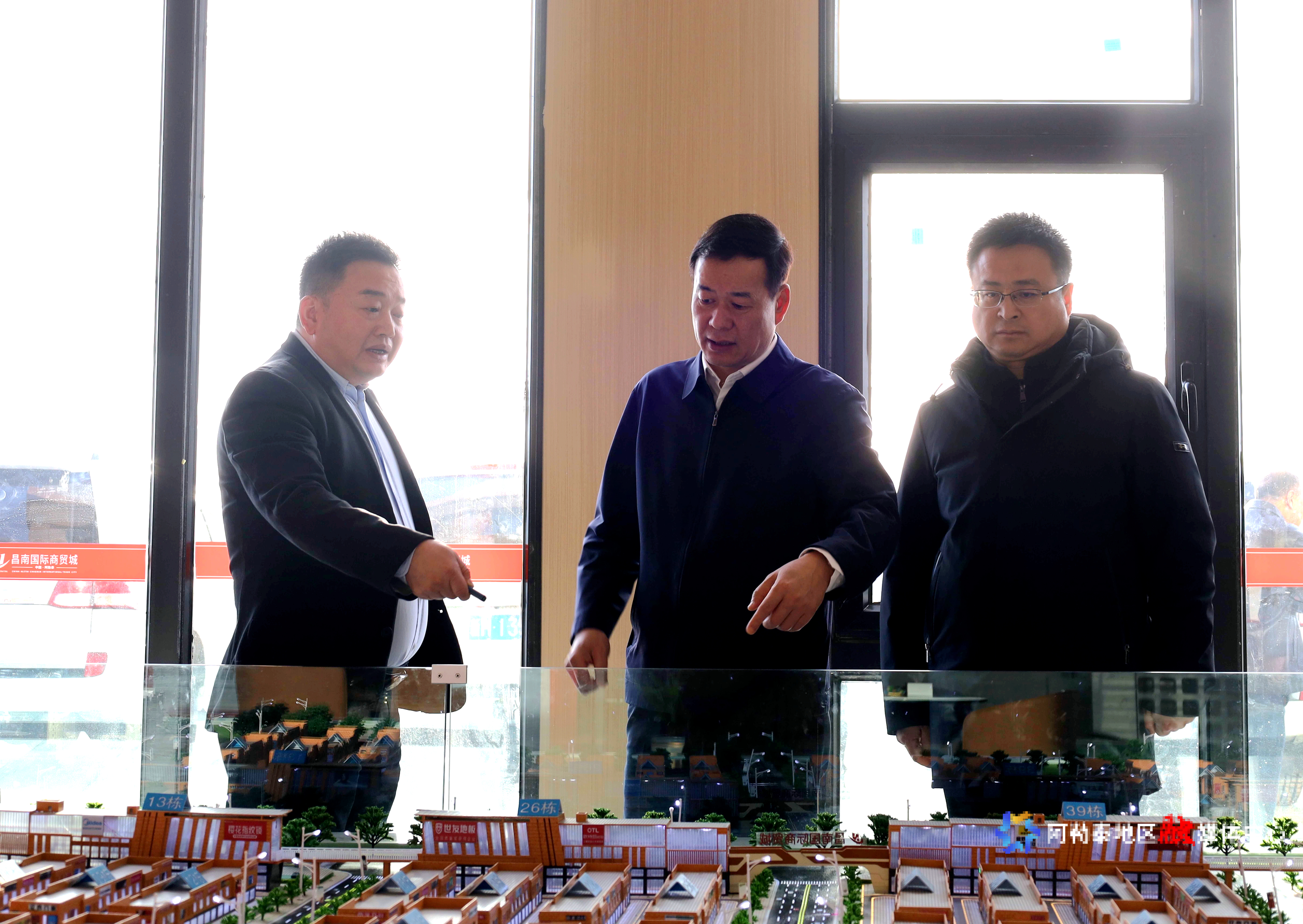 3月4日,地委书记谢少迪在昌南国际商贸城项目建设施工现场调研。通讯员 付浩东 摄