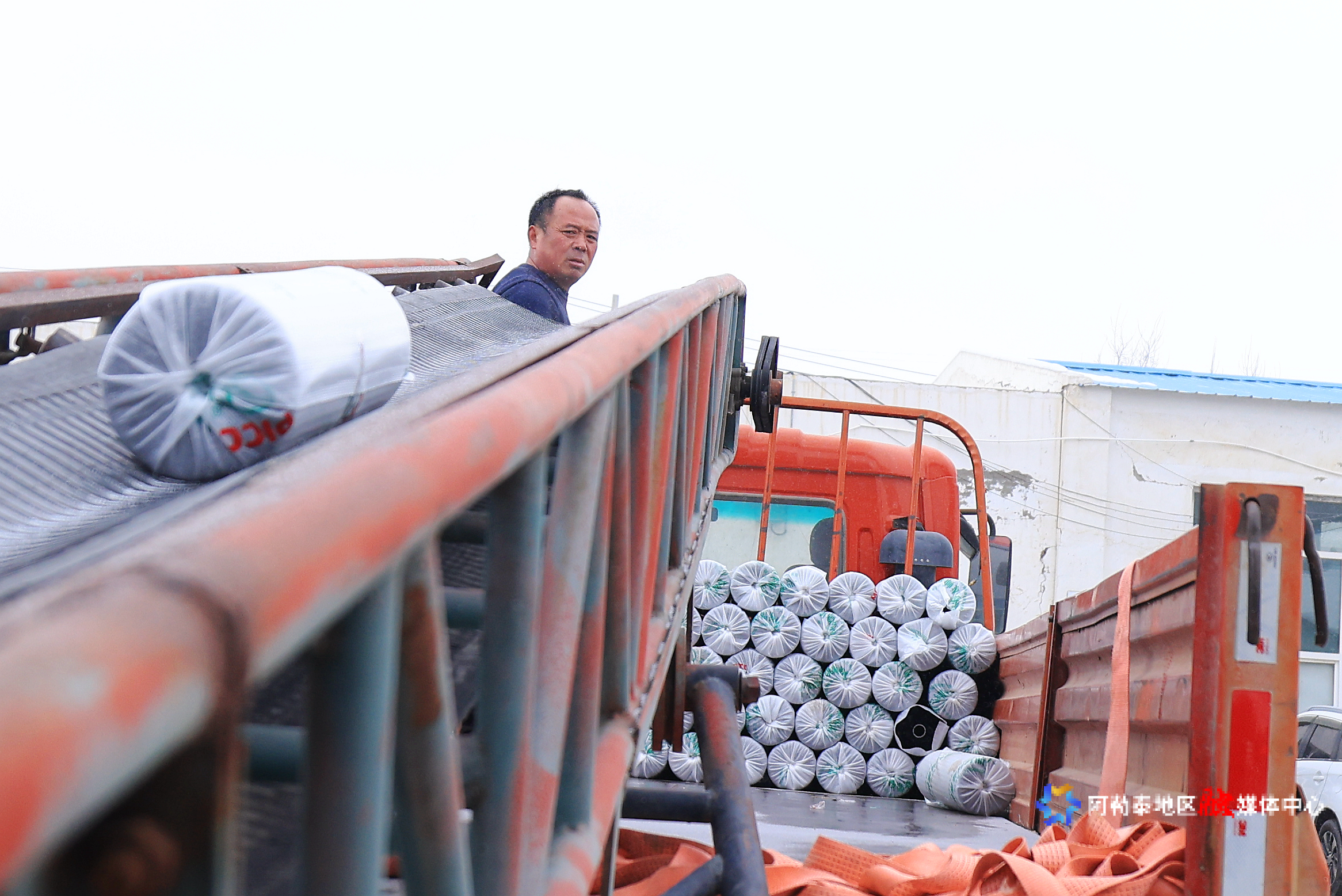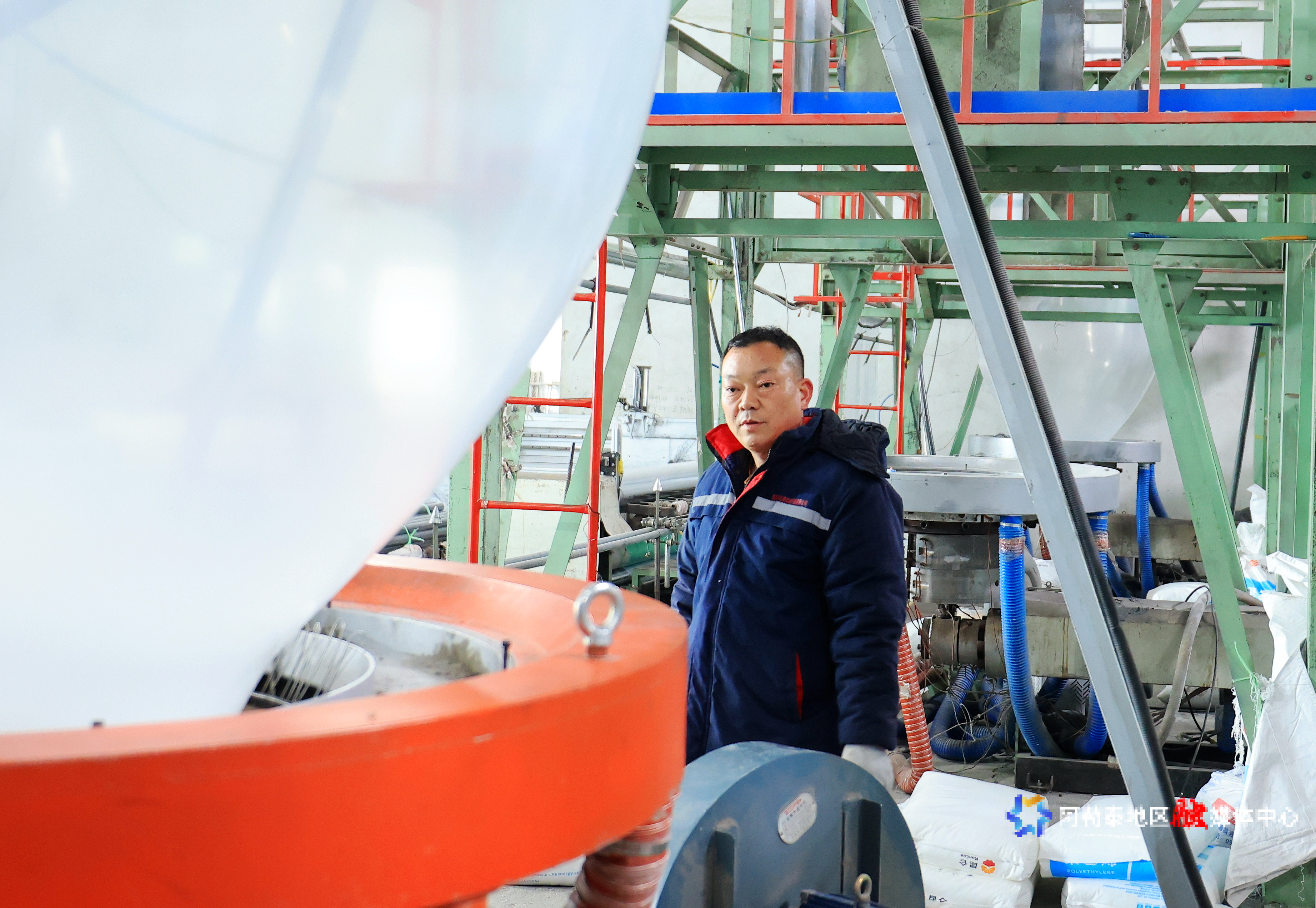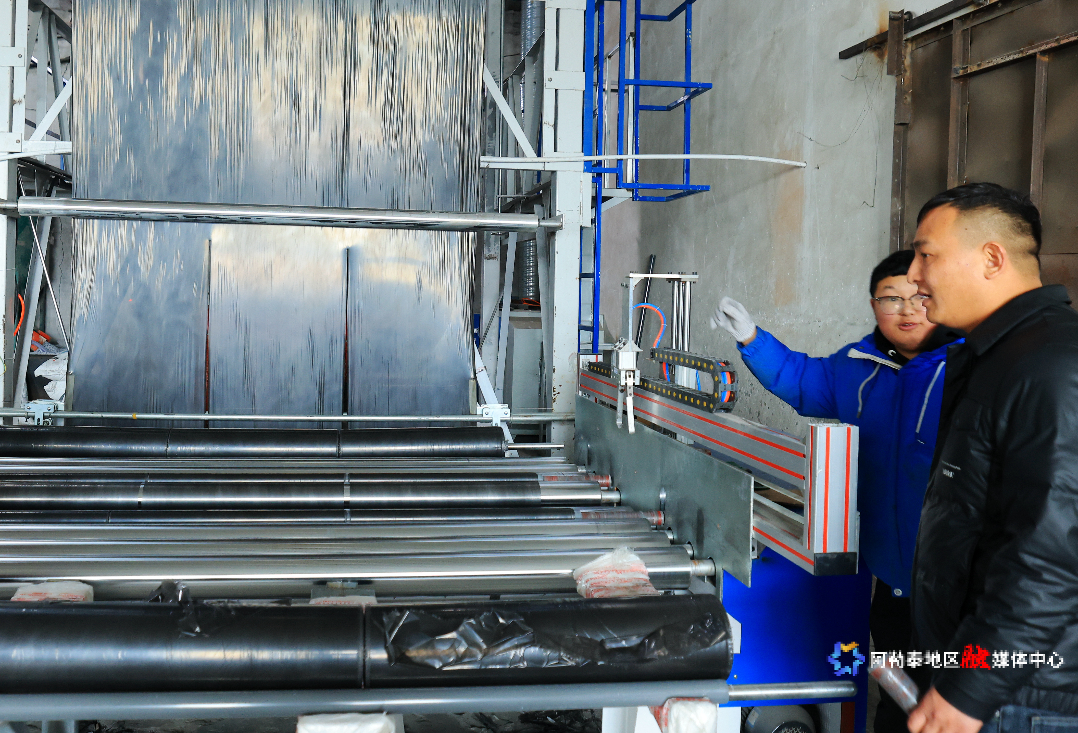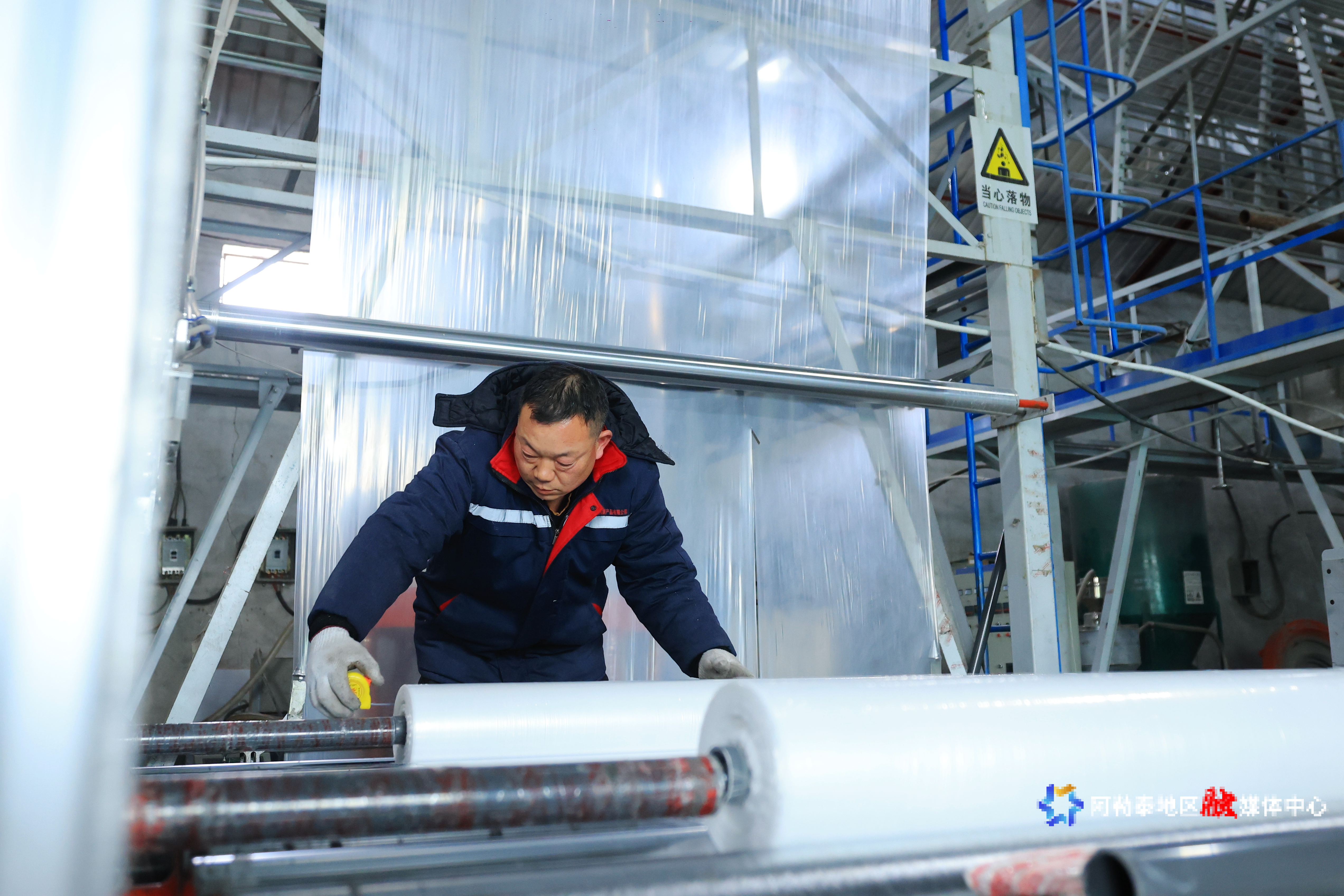 3月5日,福海县天惠地膜厂地膜生产车间,机械轰鸣,工人在生产线上加紧生产地膜,全力保障春耕备耕。