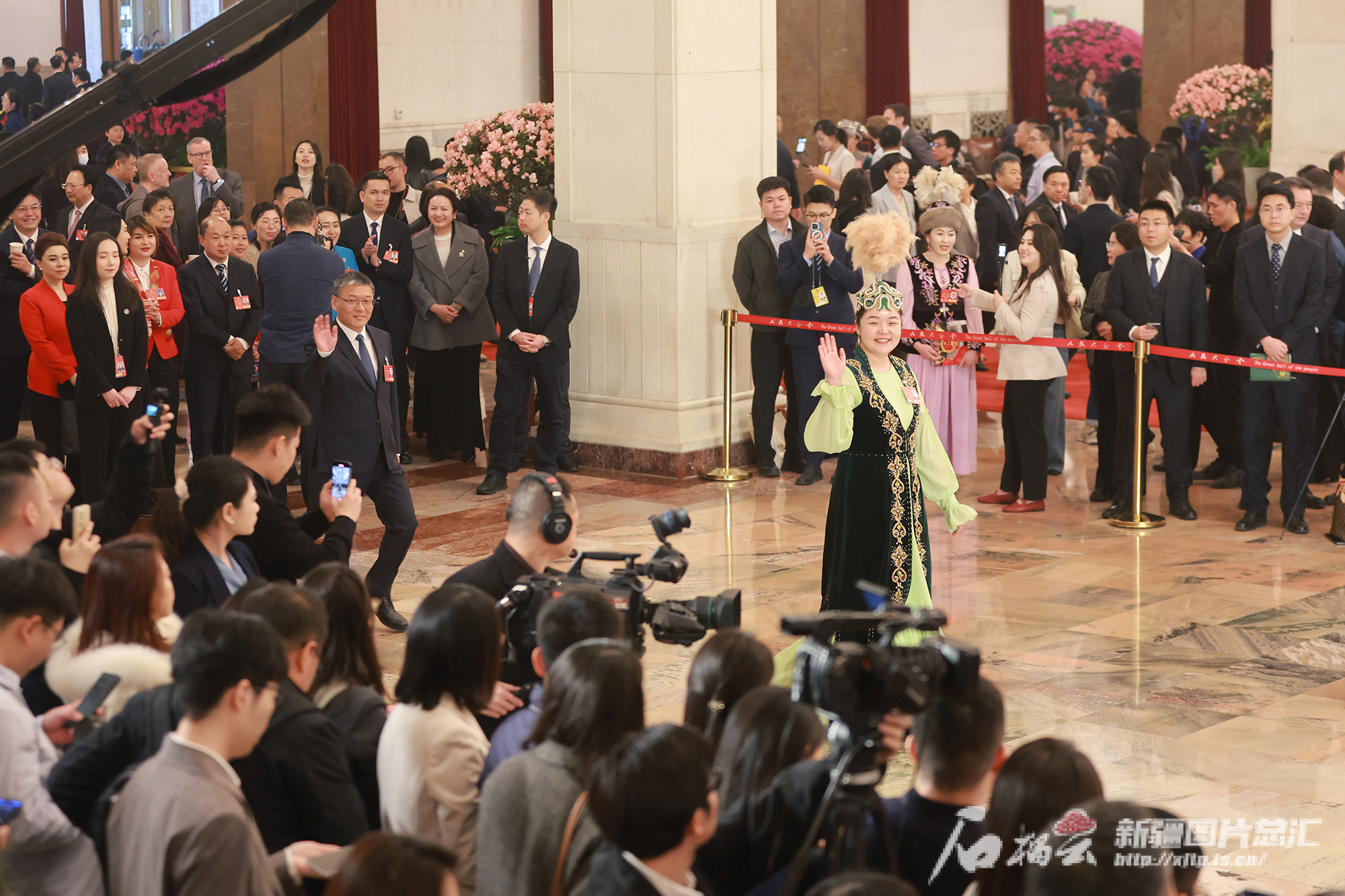 3月11日,在疆全国人大代表卓娅·巴合提走上“代表通道”接受媒体采访。石榴云/新疆日报记者 崔志坚摄