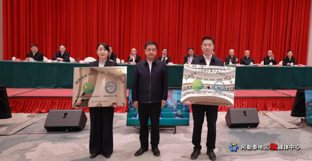 会议为阿勒泰冰雪旅游行业产教融合共同体授牌。