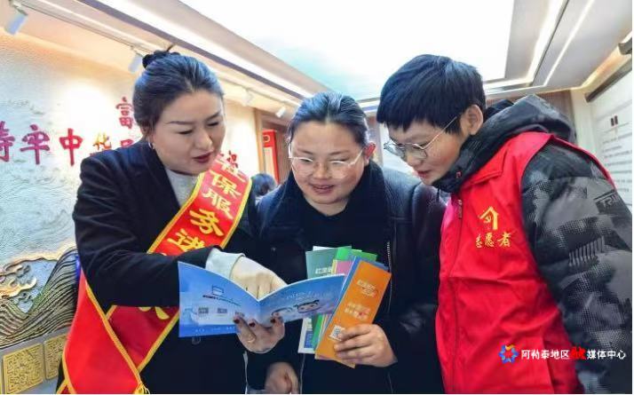 阿勒泰地区社会保险中心工作人员在日常宣传工作中。图片由阿勒泰地区社会保险中心提供