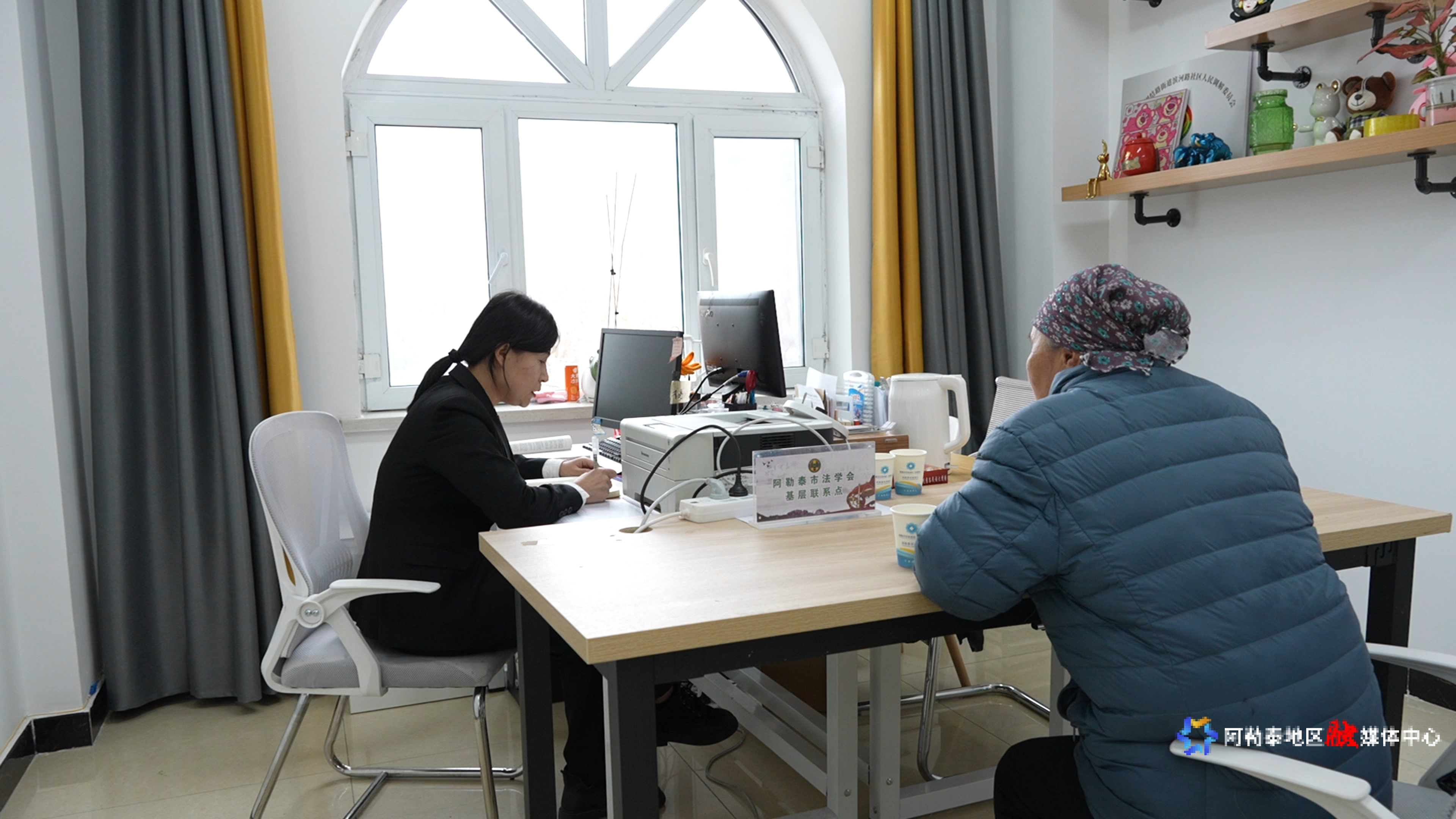 阿勒泰新闻网-阿勒泰地区融媒体中心(实习记者 姚晨 王景鸿)4月9日,在阿勒泰市人民法院驻阿勒泰市团结路街道滨河路社区法官工作室,阿勒泰市人民法院工作人员正在了解群众诉求,将专业的司法服务送到各族群众“家门口”,把土地权属、家庭纠纷、民间借贷等矛盾纠纷化解在基层。