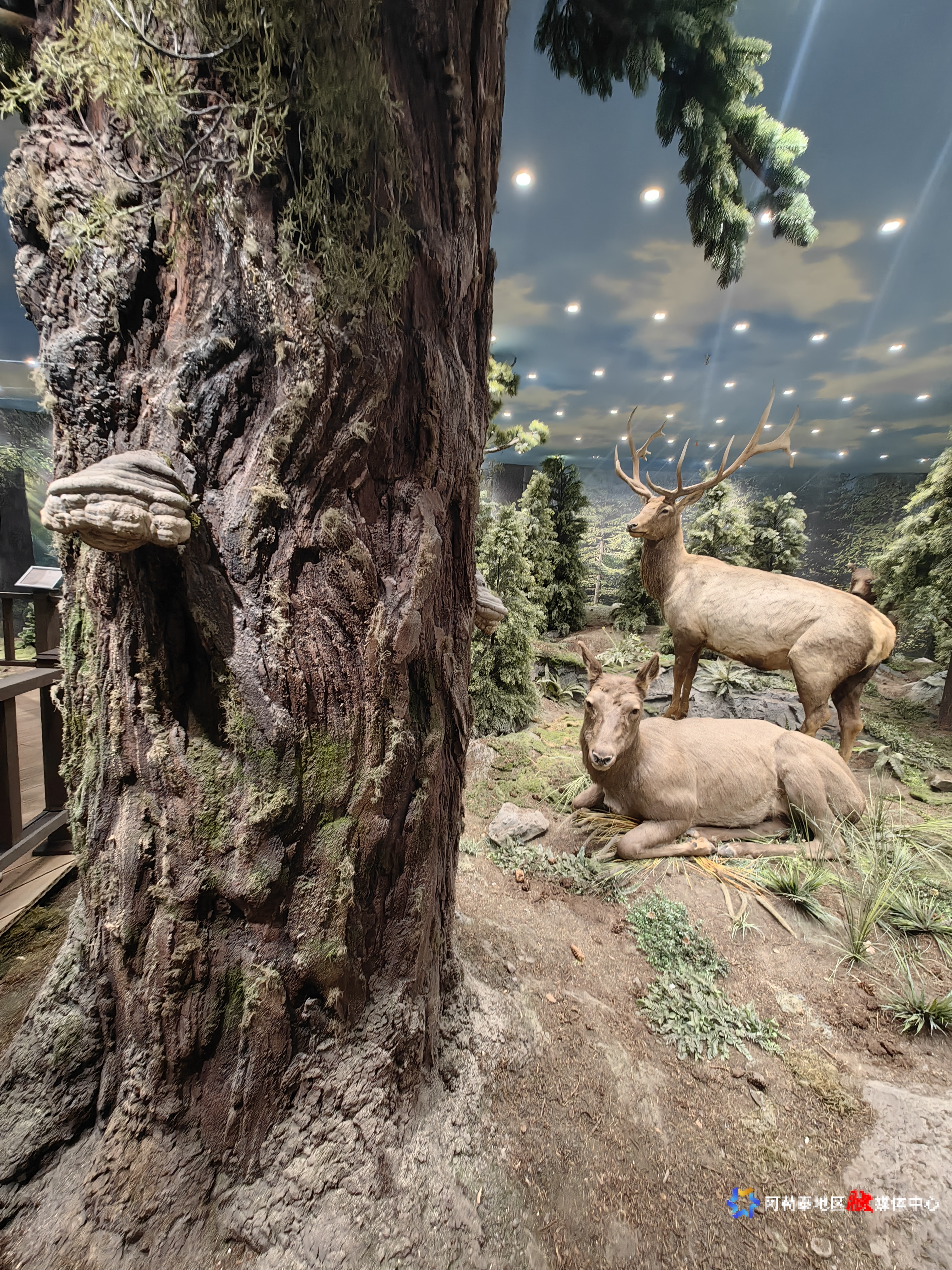 当天,记者走进喀纳斯自然博物馆,冰川的冷冽气息从“之源”展区的仿真地貌中扑面而来,雪豹标本在“之盛”展区的光影下昂首凝视,而蒙古族图瓦人守护净土的古老智慧则通过全息投影娓娓道来。这座位于喀纳斯国家地质公园核心地带的博物馆,以“沉浸式自然史诗”为设计理念,将阿尔泰山的生态密码浓缩于四大主题展区——从亿年地质裂变到湿地生灵跃动,游客既能触摸寒武纪古生物化石的纹理,也能透过VR镜头“漫步”喀纳斯湖畔的秋日彩林。随着数字交互屏亮起,一场关于生物多样性与人类共生的对话在此展开,这座“没有围墙的生态课堂”以科技与人文交织的魅力,重新定义了阿勒泰地区的文旅地标。