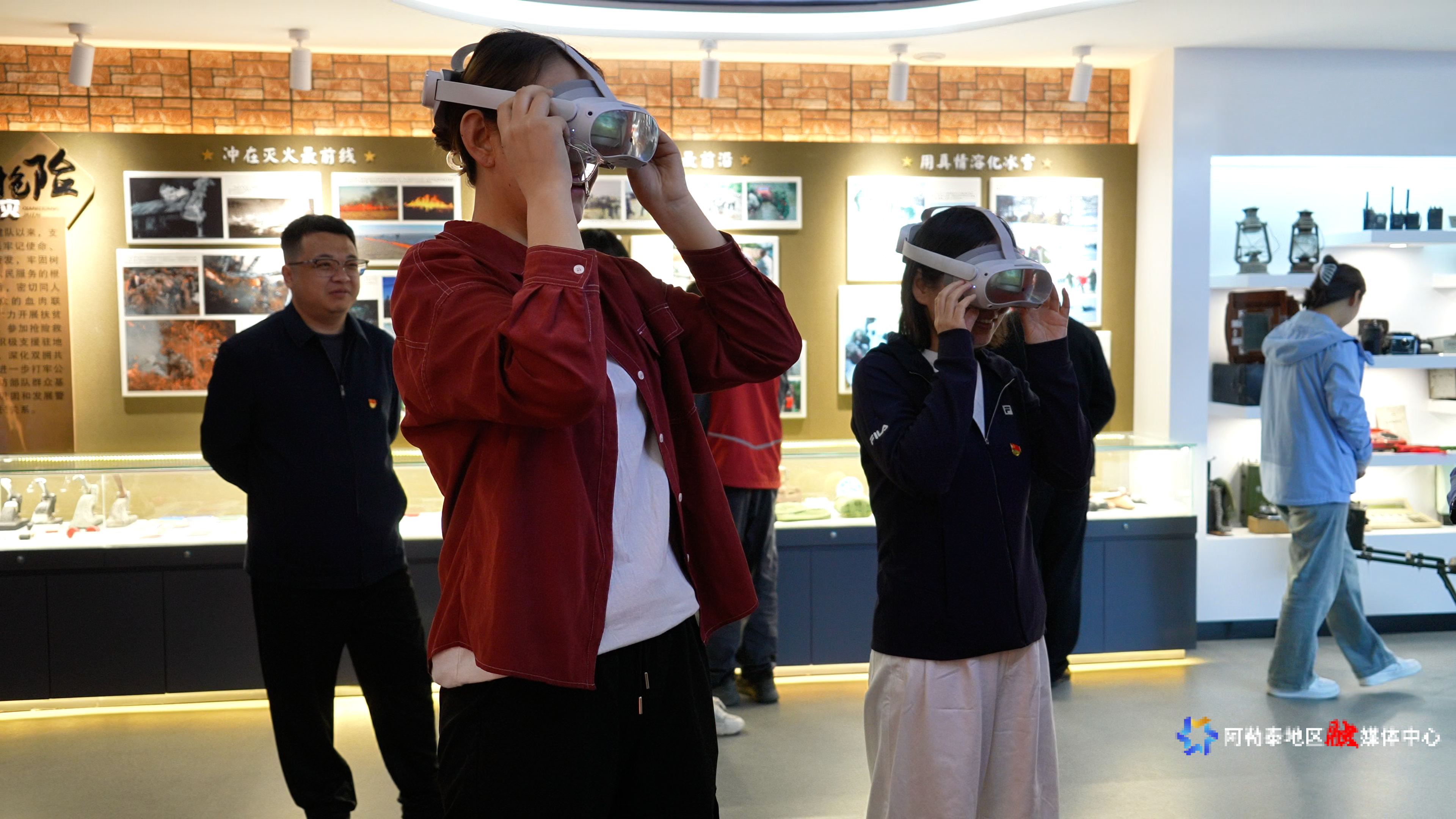 当日,在阿勒泰边境管理支队警史馆内,一张张生动的历史照片、一件件珍贵的实物展品,无声地诉说着移民管理警察守卫边疆、捍卫国家主权和领土完整的英勇过往。在VR互动体验专区,通过现实与虚拟的交融,让大家对常年巡逻于边境线上的移民管理警察肃然起敬。