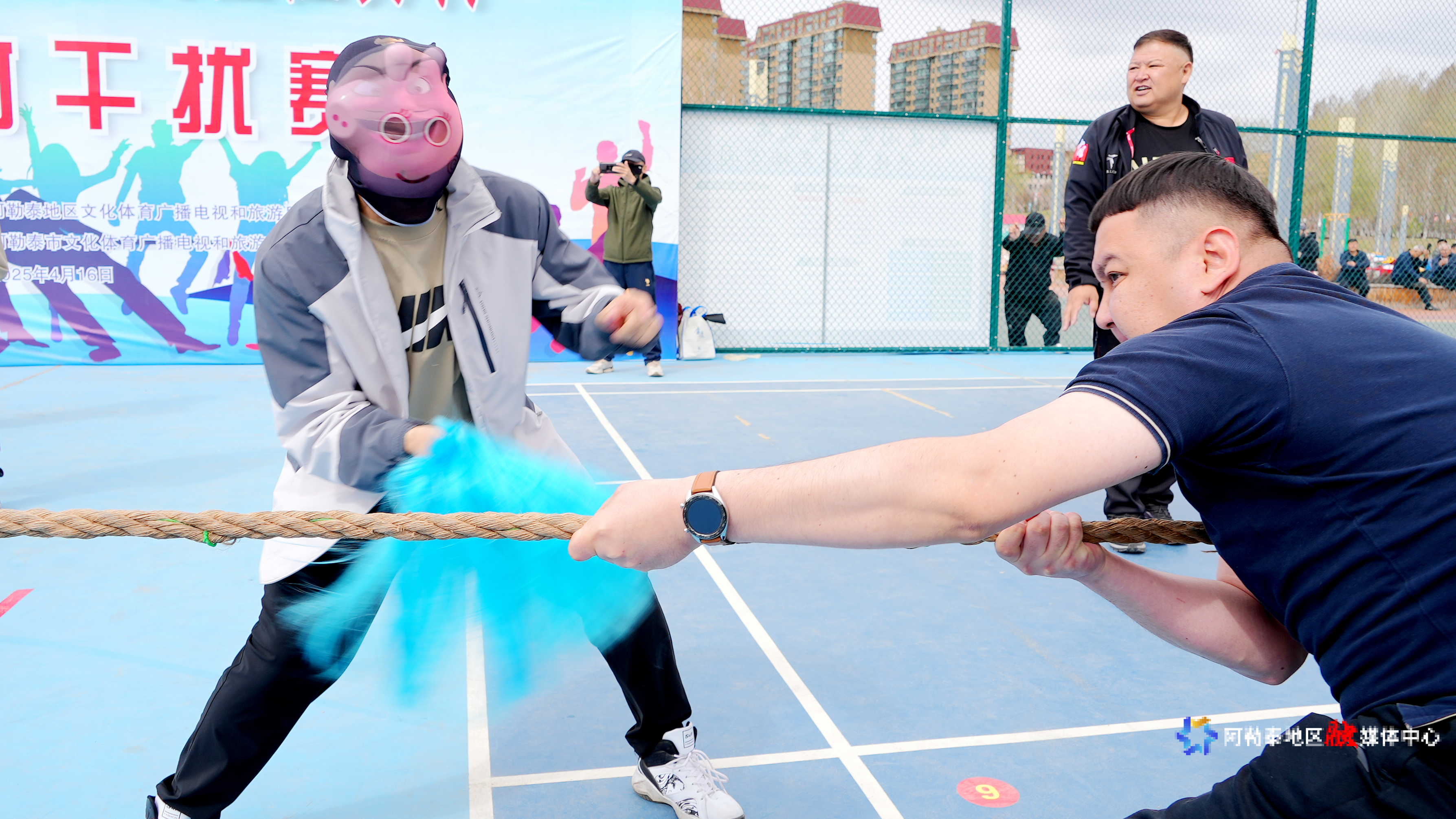 阿勒泰新闻网-阿勒泰地区融媒体中心(记者 董世菊 张福新)4月16日,阿勒泰市全季体育公园里欢笑声、加油声此伏彼起,“我的阿勒泰 疯狂拉力村”拔河干扰赛在这里火热开赛。来自阿勒泰市的15支代表队使出浑身解数,队员们有的拼命拉绳,有的拼命搞笑,把传统拔河玩出了新花样。