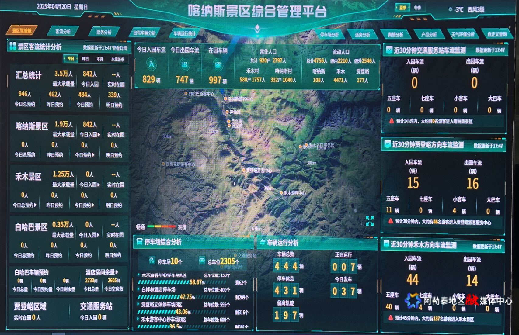 去年以来,喀纳斯景区智慧平台以“一网统管”为目标,构建了覆盖票务、交通、安全、服务等全场景的管理体系。通过实时调阅购票数据、交通监控、舆情反馈及天气信息,平台实现了全时段动态调度,尤其在“五一”“国庆”等客流高峰及极端天气中,有效保障了景区秩序与游客安全。