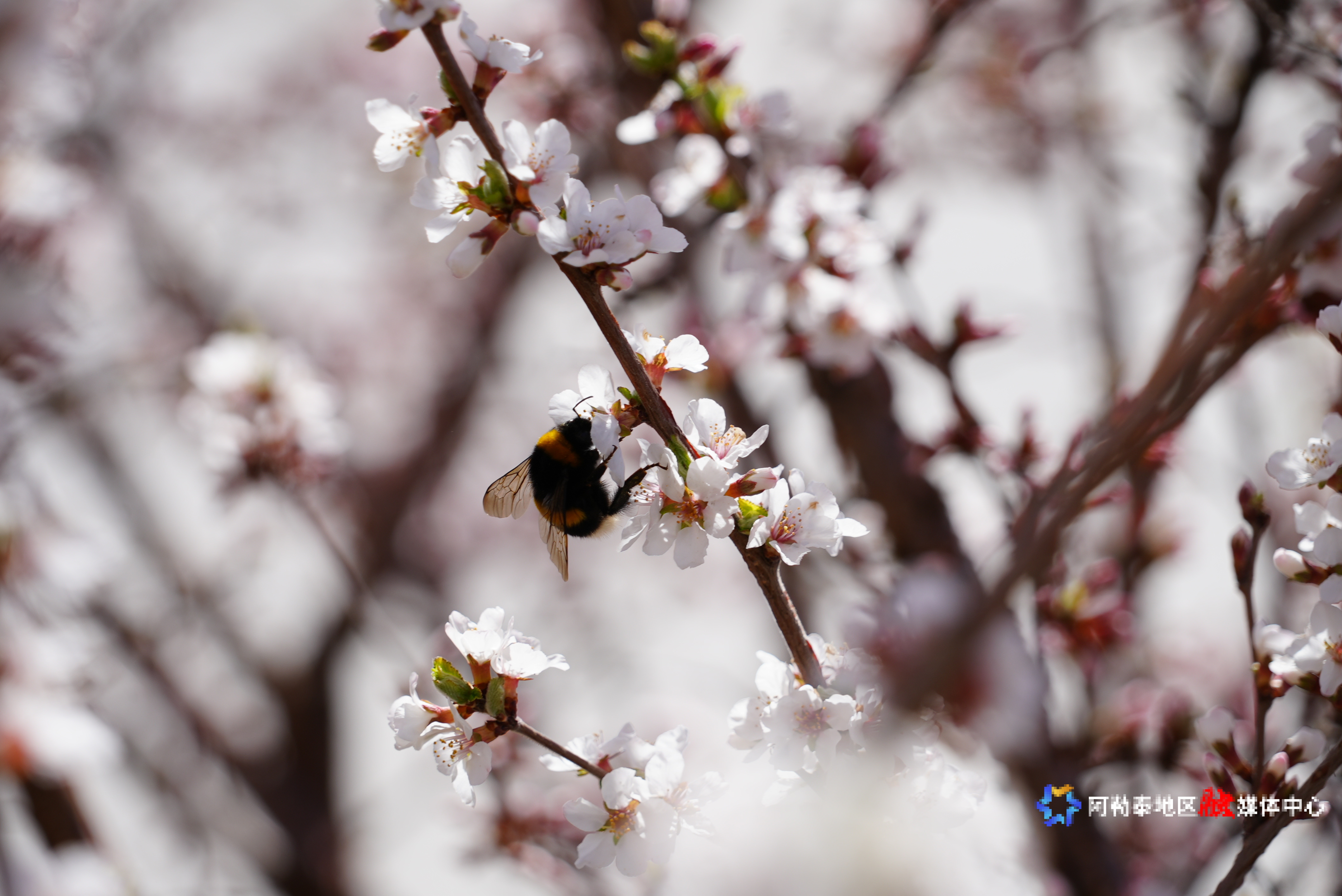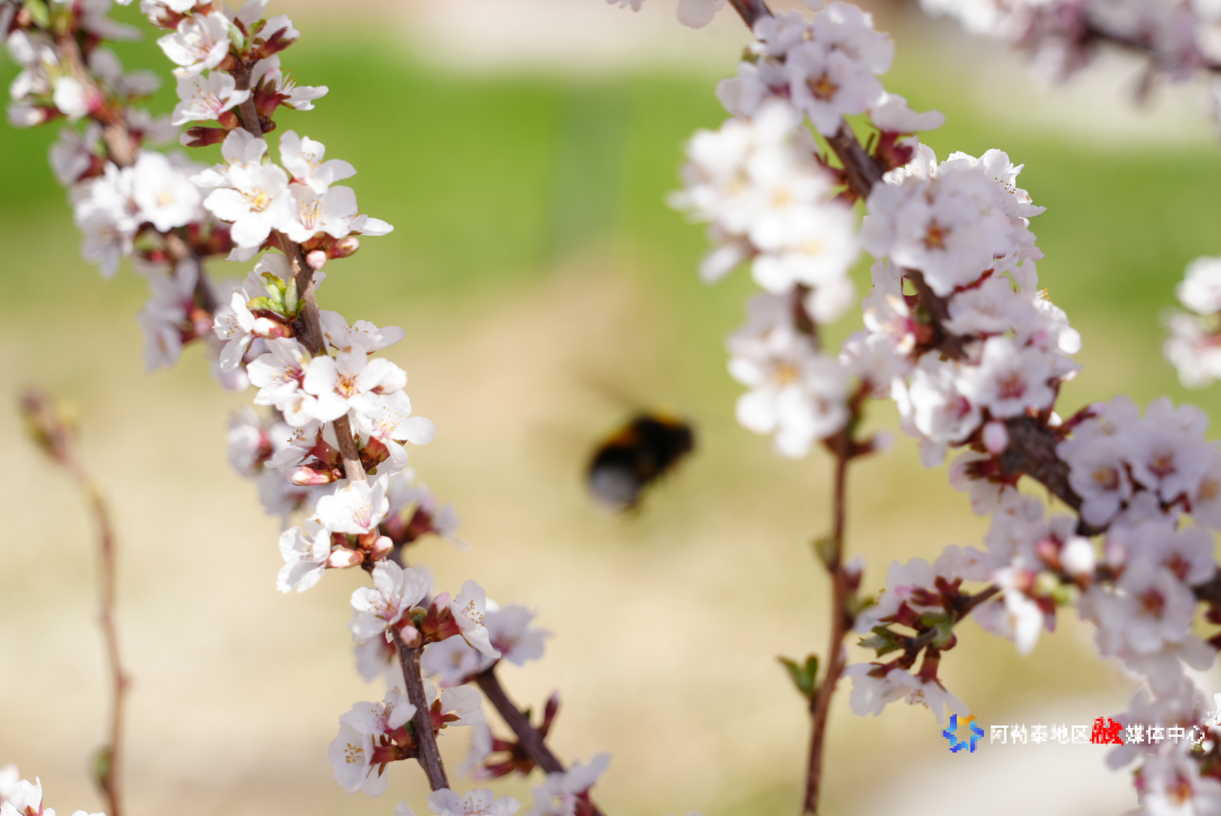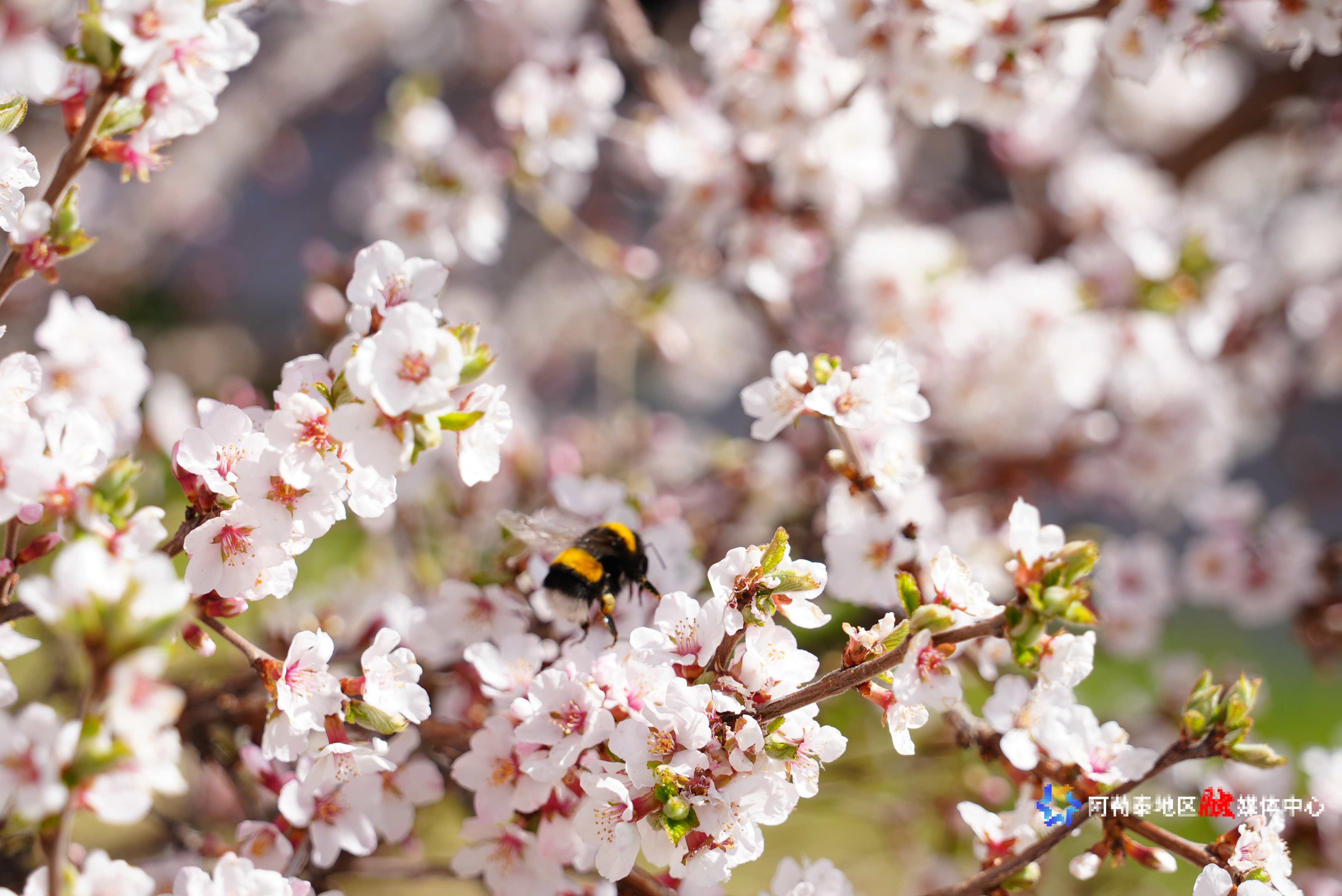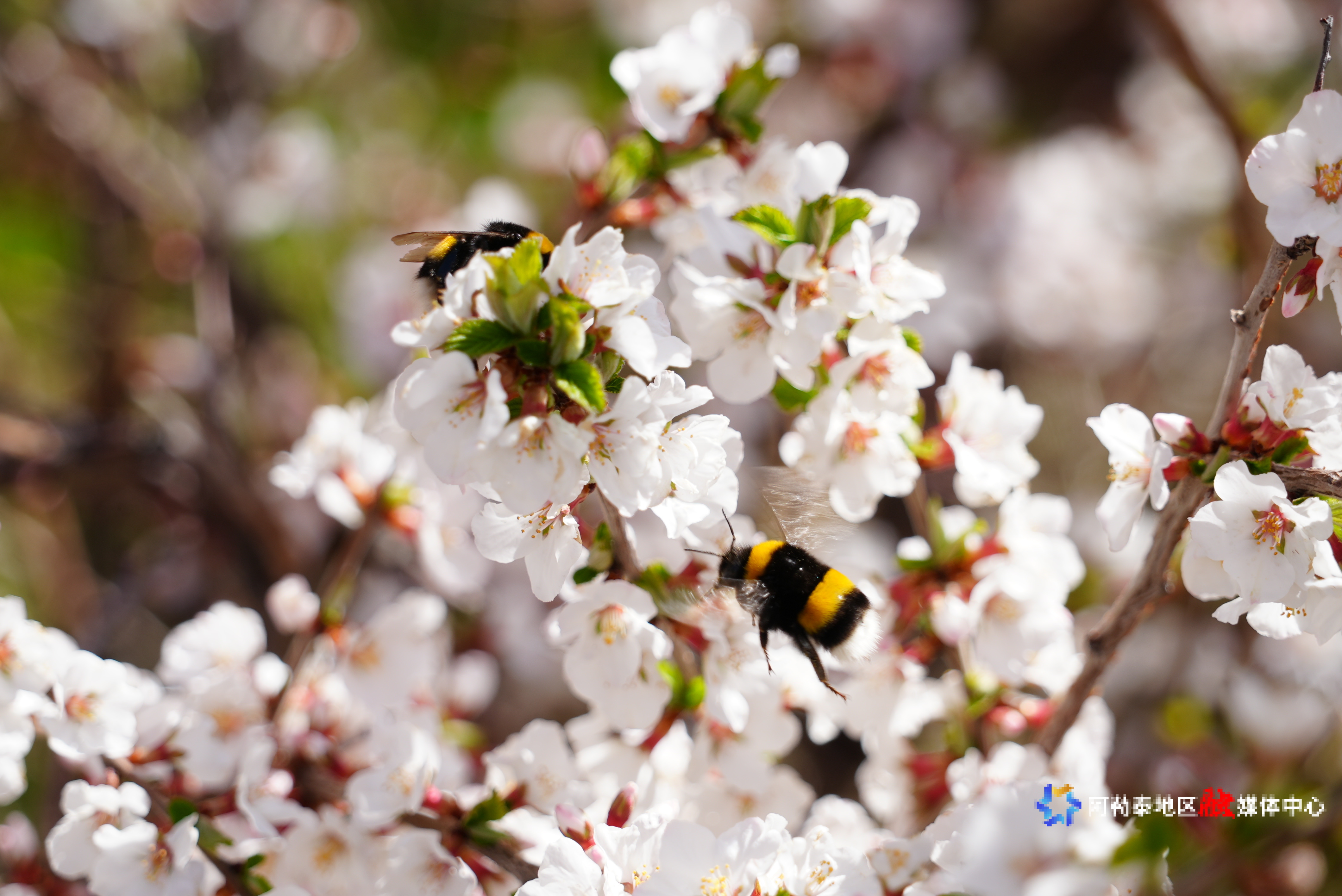 走进阿勒泰市恰北、恰南、驼峰等居民小区,杏花如云似雪缀满枝头,梅花以深红浅绛点缀其间,而晚樱则簇拥成团,随风轻摇。花丛中,蜜蜂穿梭忙碌,边城的春之序曲就在其翅膀振动的“嗡嗡”声中悄然奏响。