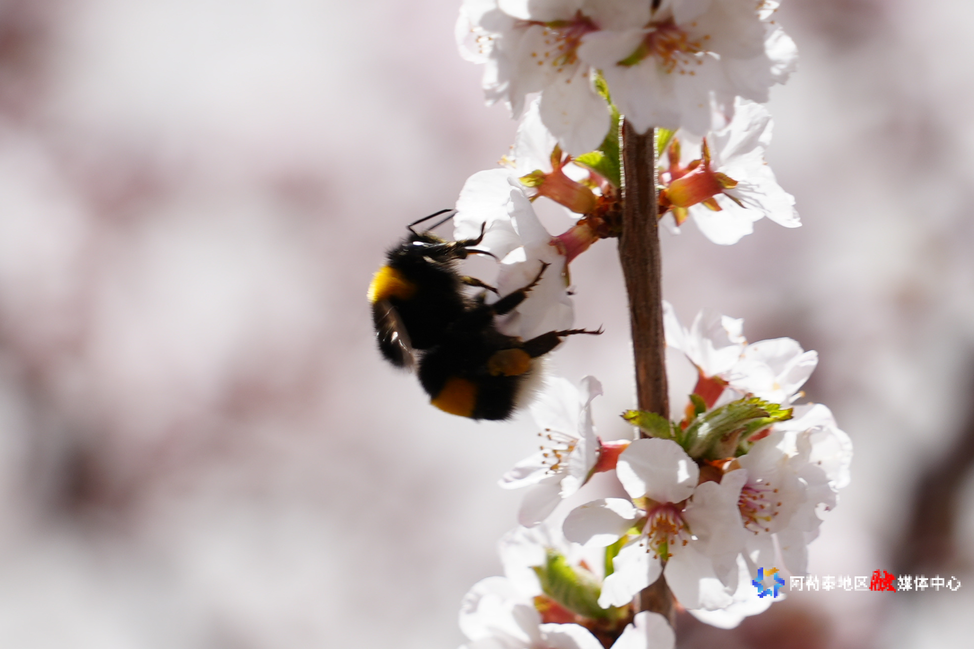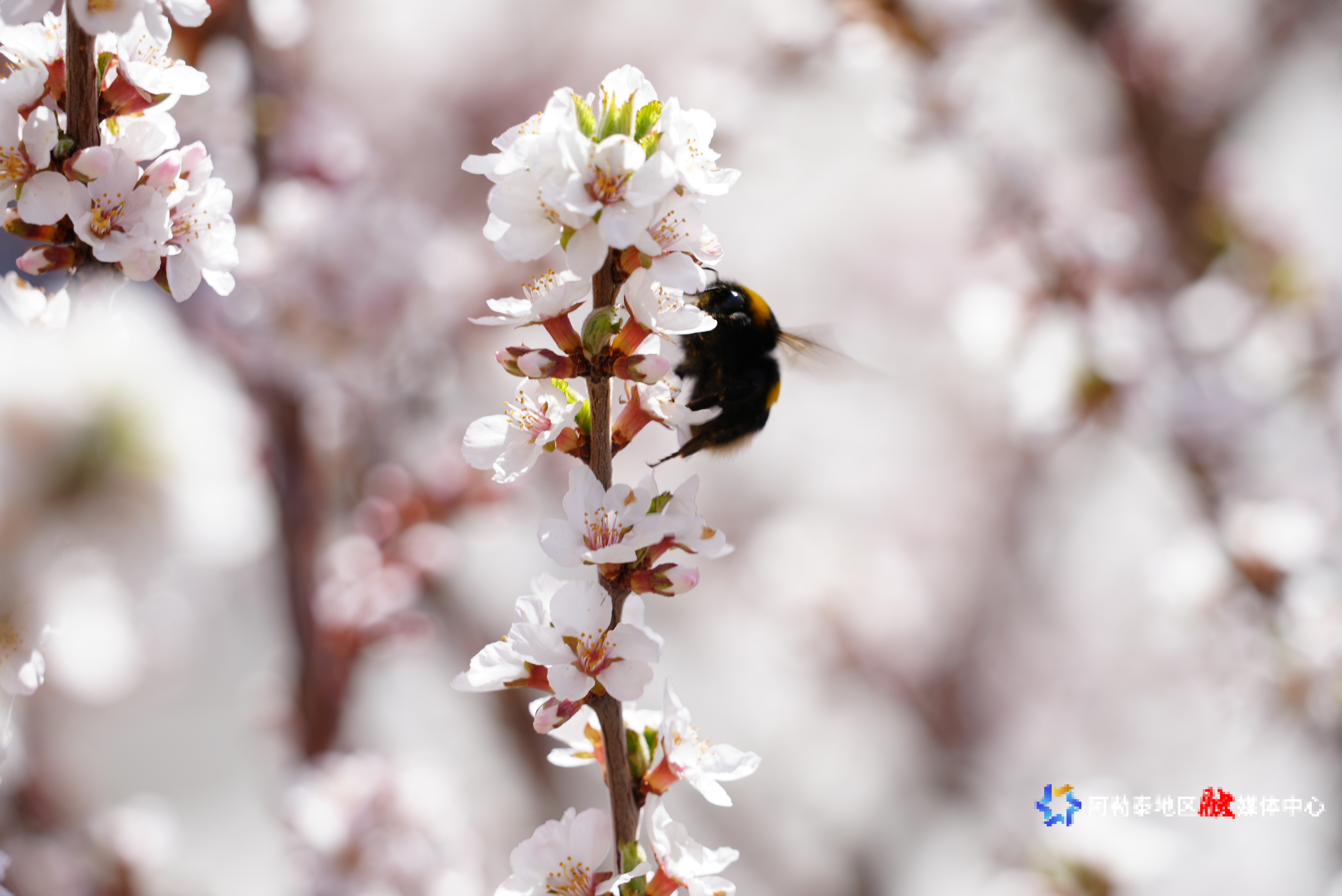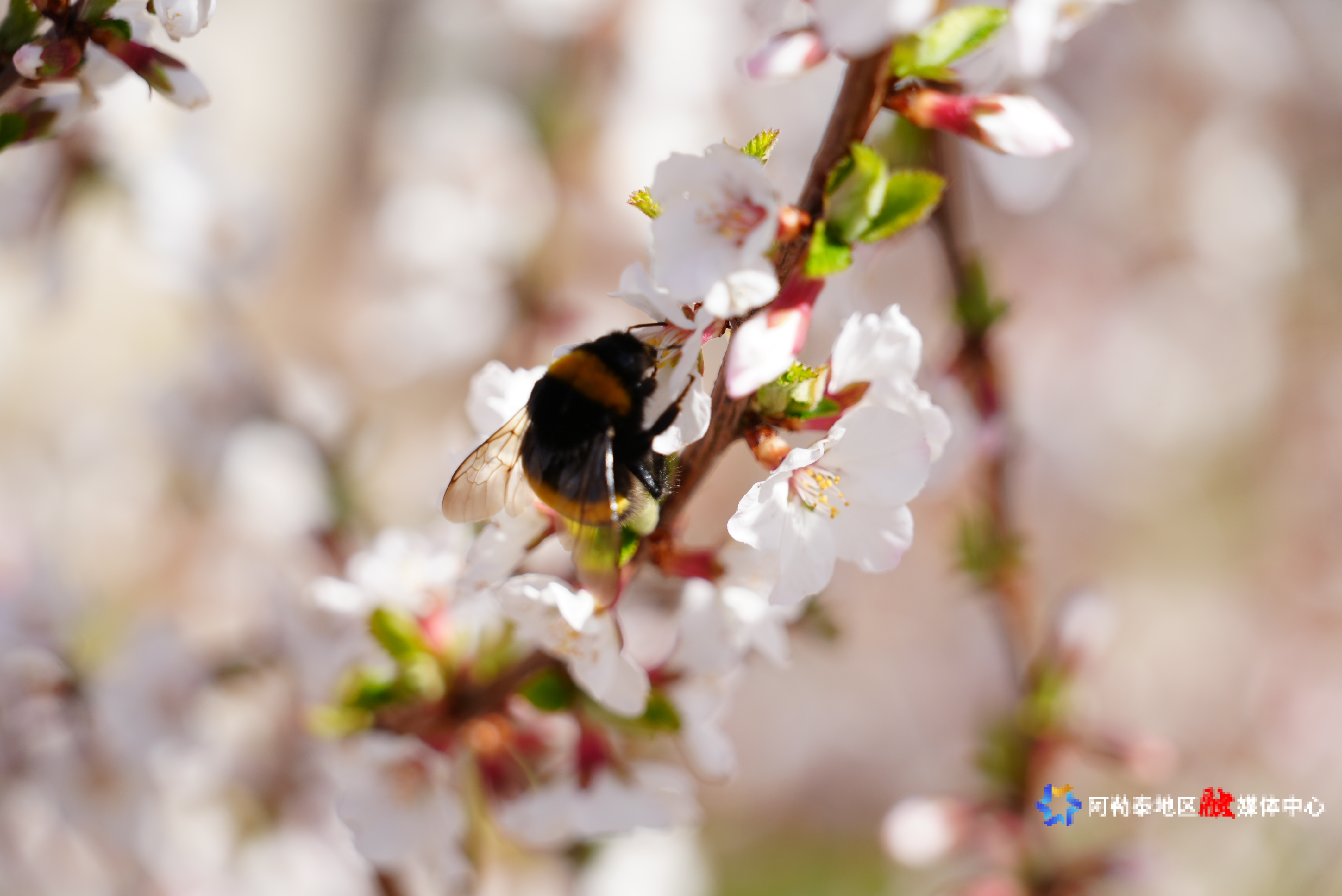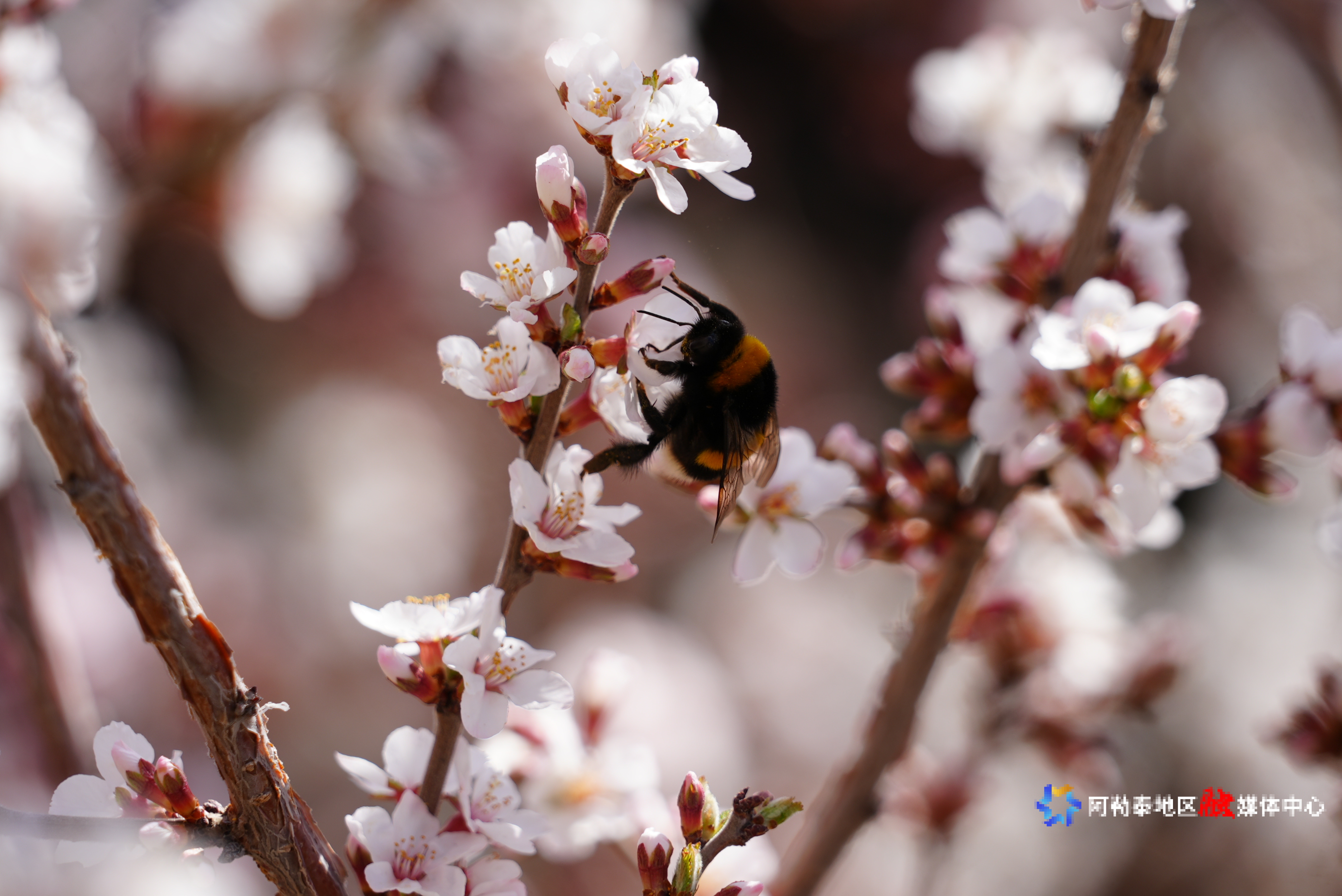 走进阿勒泰市恰北、恰南、驼峰等居民小区,杏花如云似雪缀满枝头,梅花以深红浅绛点缀其间,而晚樱则簇拥成团,随风轻摇。花丛中,蜜蜂穿梭忙碌,边城的春之序曲就在其翅膀振动的“嗡嗡”声中悄然奏响。