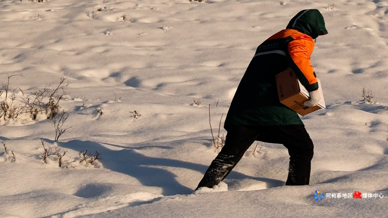 夕阳映着积雪,木哈买提别克的影子被拉得很长。日子匆忙、时间飞快,十余年间,他见证了这条邮路沿途上的各种变迁:毡房变民宿,生活变好了,马鞍旁总有堆满的快递,还有不少人家的孩子通过他送达的网课设备升入了理想的学府……