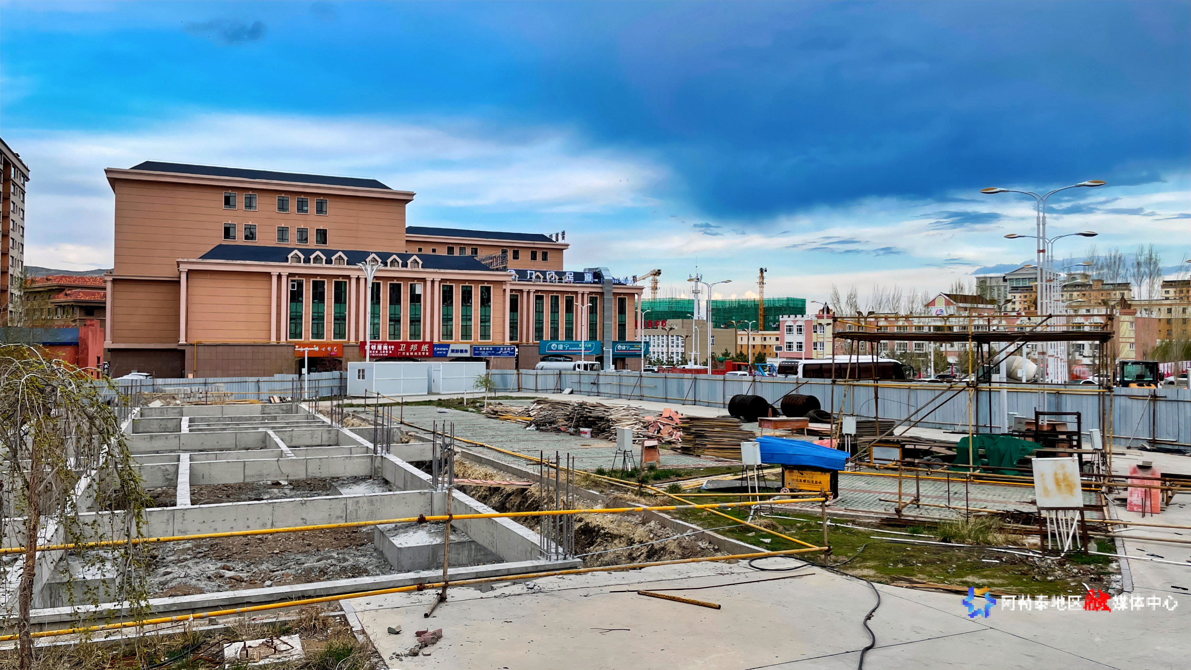 解放路社区的养老服务建设项目打地基中。 实习记者 叶丽娜·努坤 摄