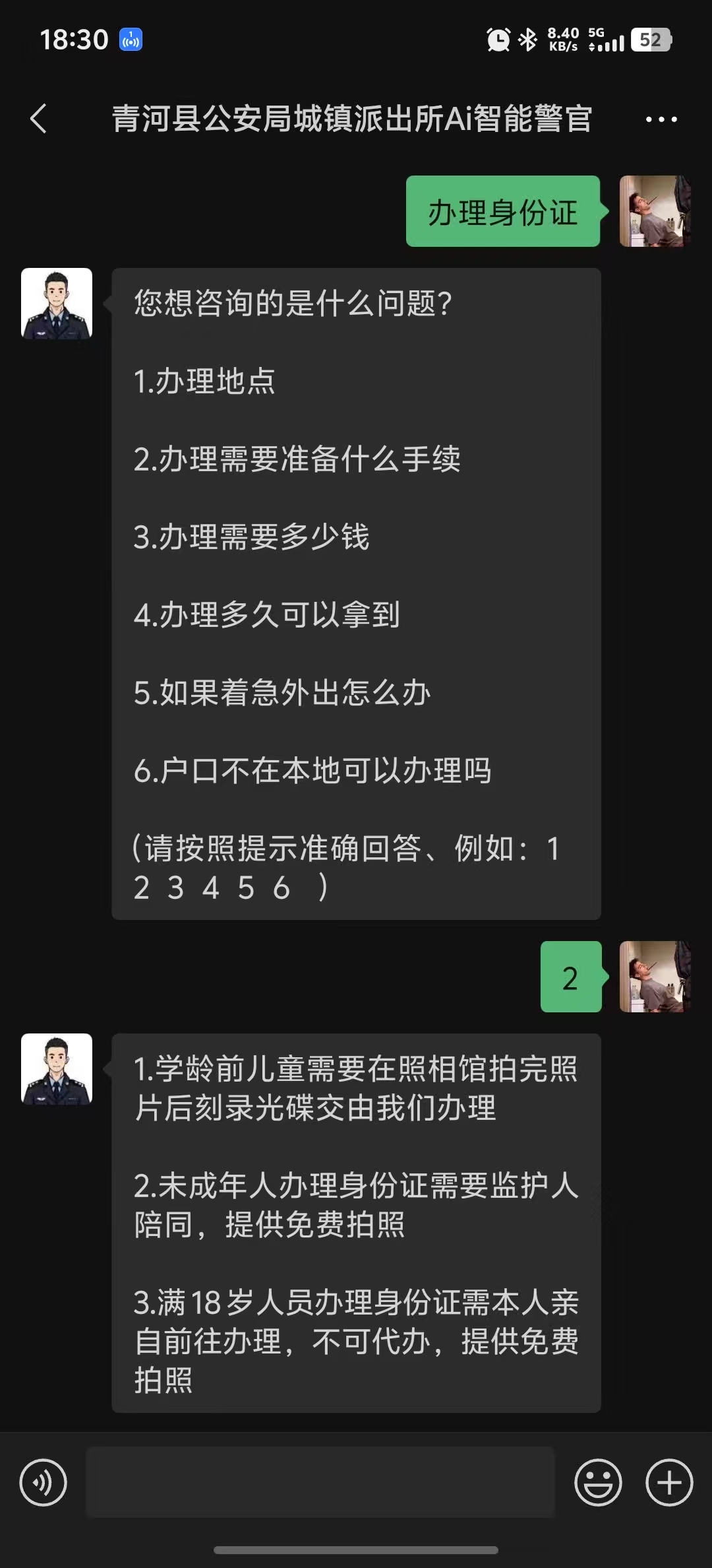 青河县公安局城镇派出所AI智能警官依托人工智能技术,能够精准识别诈骗手段,如网络投资理财诈骗、刷单诈骗等,均能进行详细剖析和预警。同时,还能为群众提供24小时不间断办事服务咨询,无论是户籍办理还是车驾管相关问题,都能快速给出准确答复。在日常提醒方面,它会定期推送安全防范知识、反诈小贴士等内容,强化群众的安全意识。