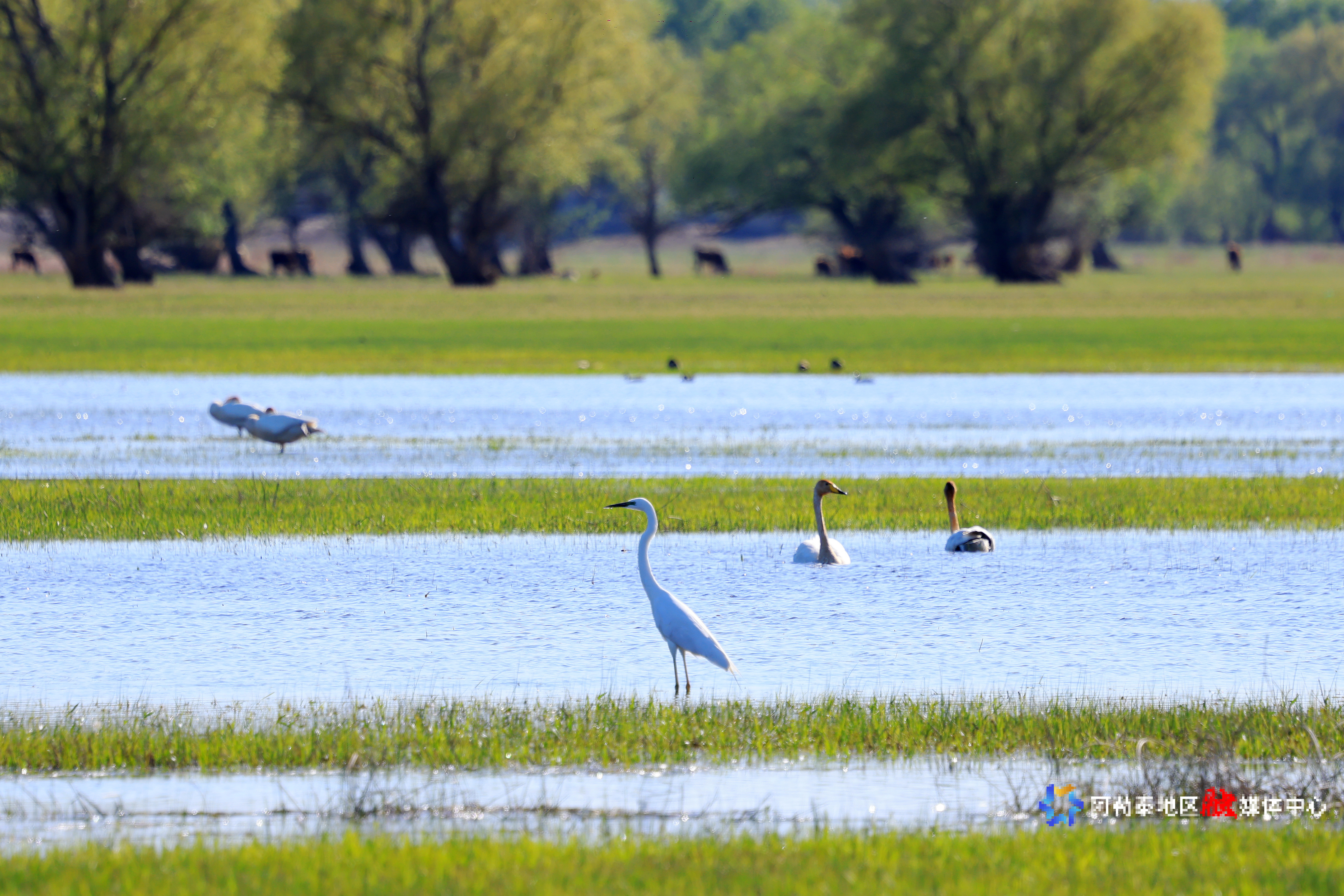 阿勒泰新闻网-阿勒泰地区融媒体中心(记者 阿尔达克·拜斯汗 实习记者 塞力克·肯恩斯汗)进入5月,天鹅、灰雁、白头硬尾鸭、黑颈鸊鷉等候鸟在阿勒泰科克苏湿地国家级自然保护区觅食、停留,绘就出一幅美丽的生态画卷。