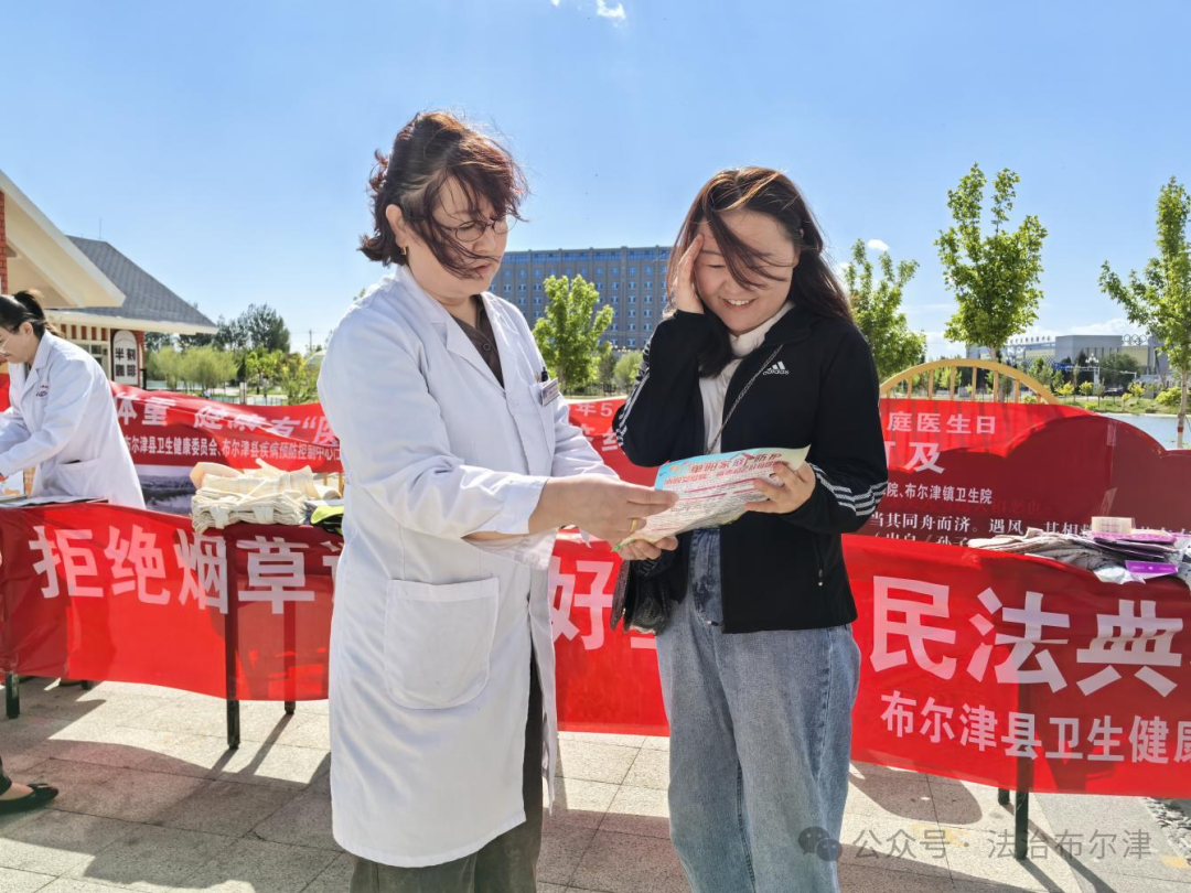 2025年5月是第五个“民法典宣传月”。为增强群众法治意识,让《民法典》走到群众身边,5月19日,布尔津县卫健委联合5家医疗机构在七彩河广场开展“健康义诊+民法典宣传”活动。