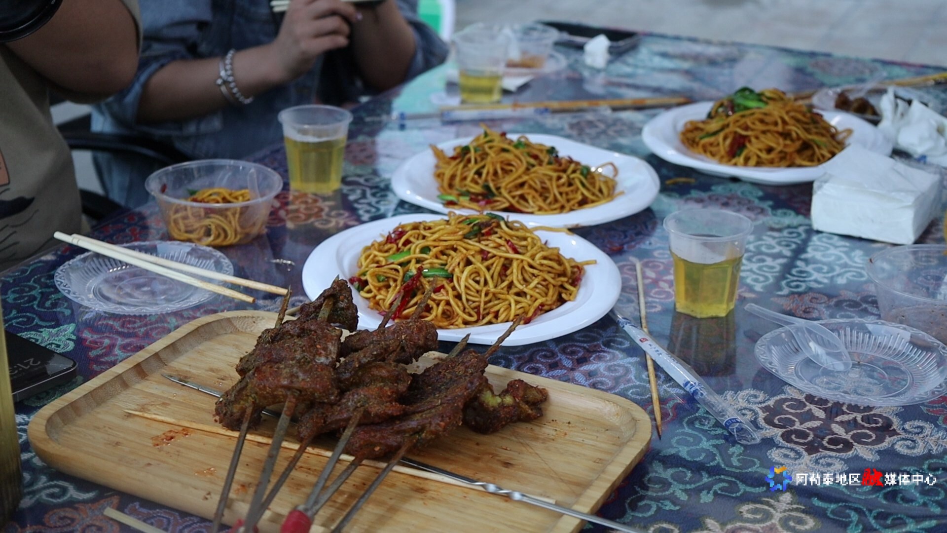 阿勒泰新闻网-阿勒泰地区融媒体中心(记者 古扎丽·阿布都热西提 通讯员 宋湖拉·沙布尔江)5月21日傍晚,阿勒泰市解放路街道社区睦邻星空夜市热闹非凡,人声鼎沸。烤架上吱吱冒油的羊肉串滴落滚烫油脂,刚出炉的烤馕金黄酥脆堆叠如山,食客们围坐在露天餐桌前,欢声笑语不断。“加辣羊排三份”“再来十串烤肉”……此伏彼起的吆喝声与清脆的碰杯声交织在一起,宛如一首独特的城市夜曲。