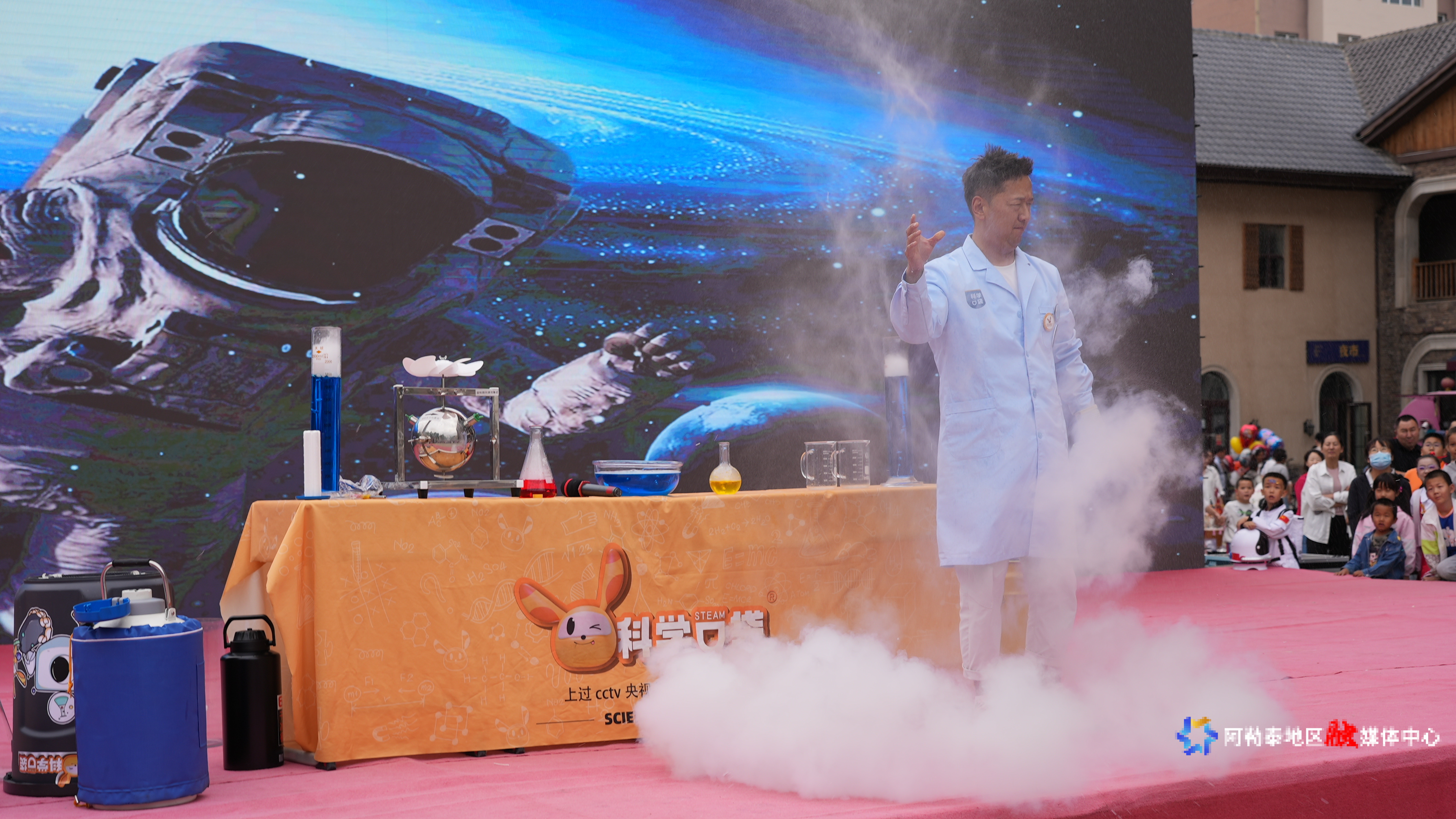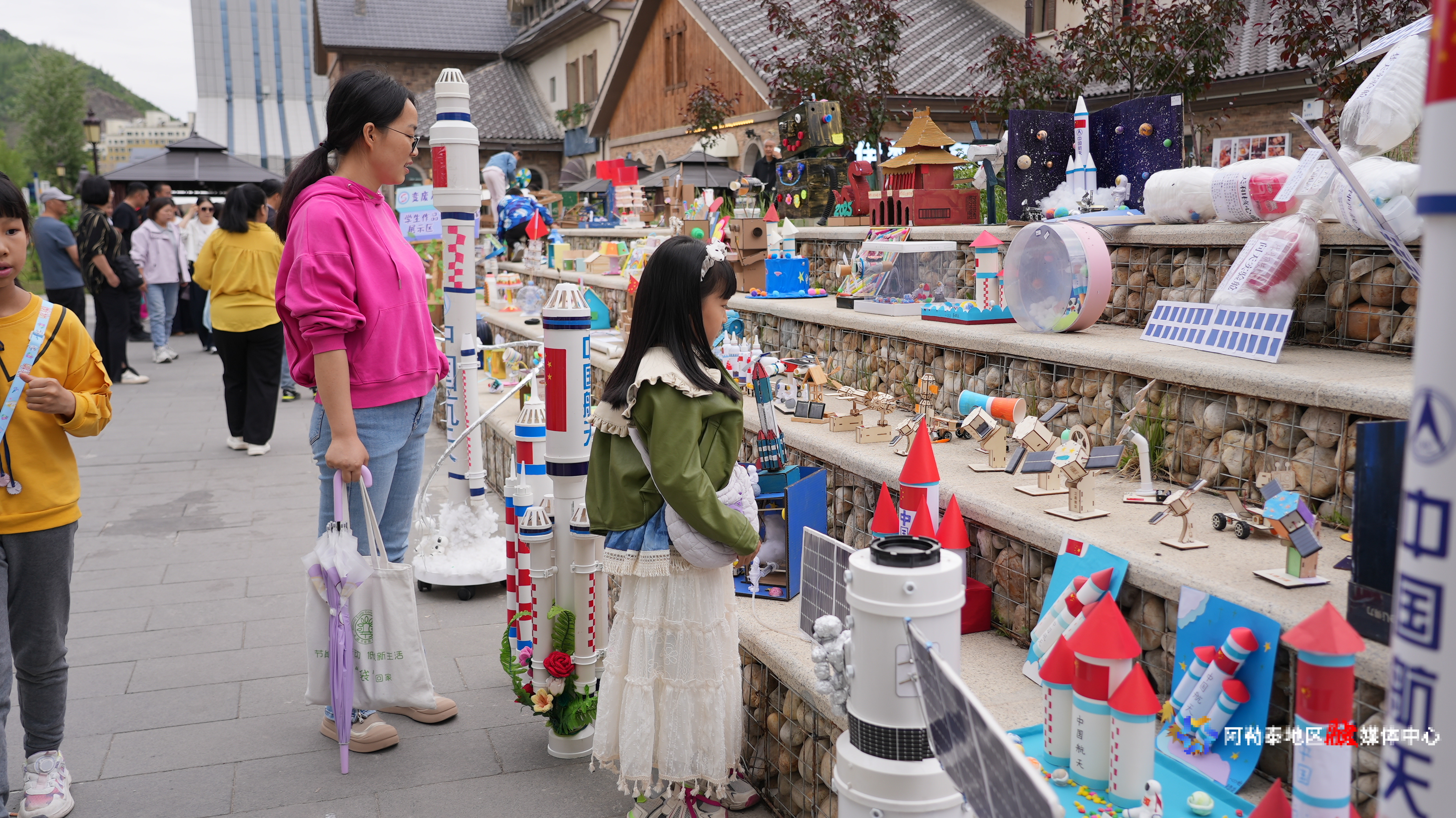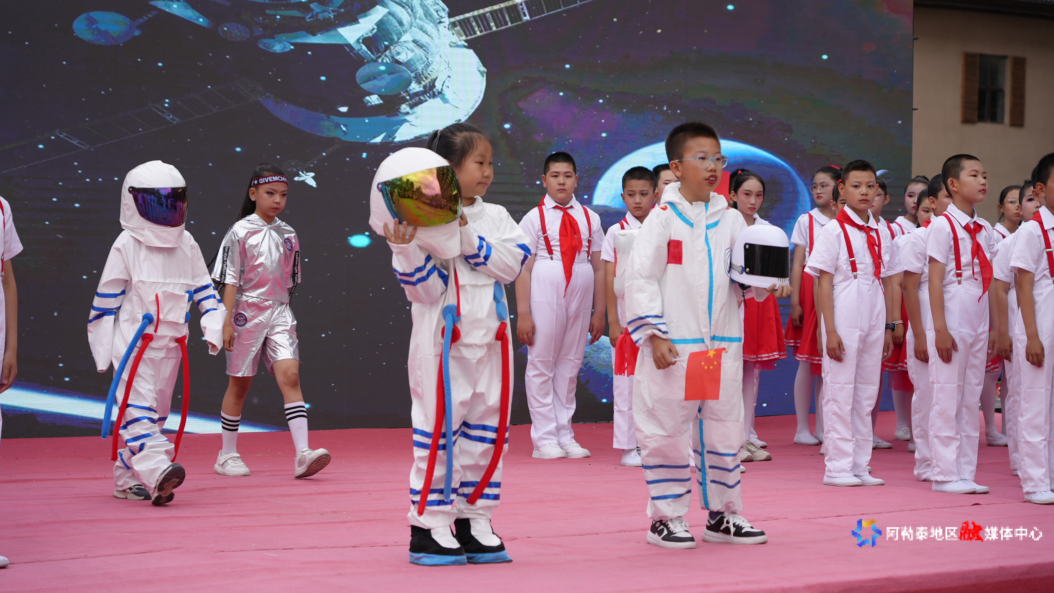 启动仪式上,一系列精彩绝伦的表演轮番上阵,由阿勒泰市实验小学80名学生组成的合唱团,用歌声唱响《问天》,传递出青少年对科学的无限向往;环保时装秀上,孩子们身着利用废旧物品精心设计制作的服装,展示出环保与创意的巧妙结合;地区科技局与阿勒泰市实验小学科学教师带来的科技秀展示,各类神奇的科学实验现象令现场观众惊叹不已;无人机编队飞行秀更是惊艳全场,数十架无人机在空中有序变幻造型,引得现场观众纷纷拿起手机记录这一精彩瞬间。