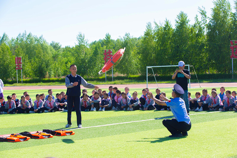 活动现场,民警结合自身丰富的救援经历,从远离危险水域、正确穿戴救生衣、不慎落水如何自救等方面,向同学们进行预防夏季溺水知识普及。同时,民警还与同学们进行了一系列精彩纷呈的互动。通过生动鲜活的案例讲解,将抽象的知识具象化,让同学们深刻认识到溺水的危险;通过互动问答的方式,充分调动同学们的积极性,引导他们主动思考。在这个过程中,民警向同学们深入浅出地讲解了具体自救、互救的操作方法,有效增强了学生们的避险意识,使他们清楚认识到在遇到溺水的情况时,该如何正确地进行自救以及科学地施救。