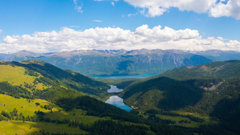 6月初,新疆阿勒泰地区哈巴河县双湖景区,地处幽静的山谷之中,被茂密的绿树环抱。湖水碧透,在蓝天的映衬下犹如两颗蓝宝石,熠熠生辉,守望一方净土。