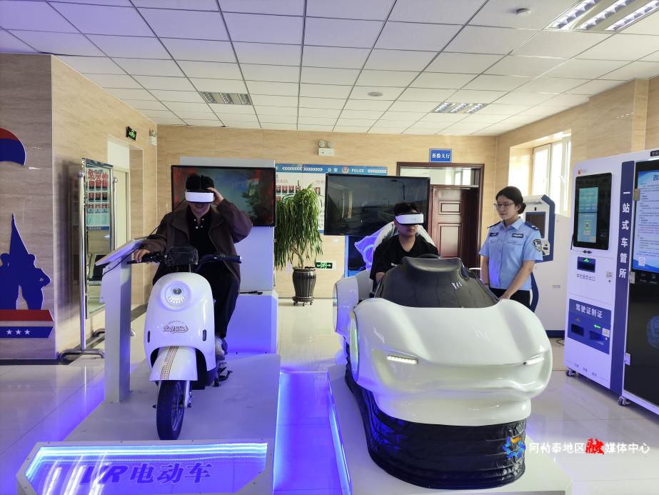 阿勒泰新闻网-阿勒泰地区融媒体中心(记者 古扎丽·阿布都热西提 通讯员 洪辉晨)VR车辆侧翻体验、4D体验酒醉驾场景……6月3日,阿勒泰市公安局交警大队在车管所业务大厅开展VR电动模拟安全教育体验活动,让参与者切身感受交通违法危害,进一步增强交通安全意识。