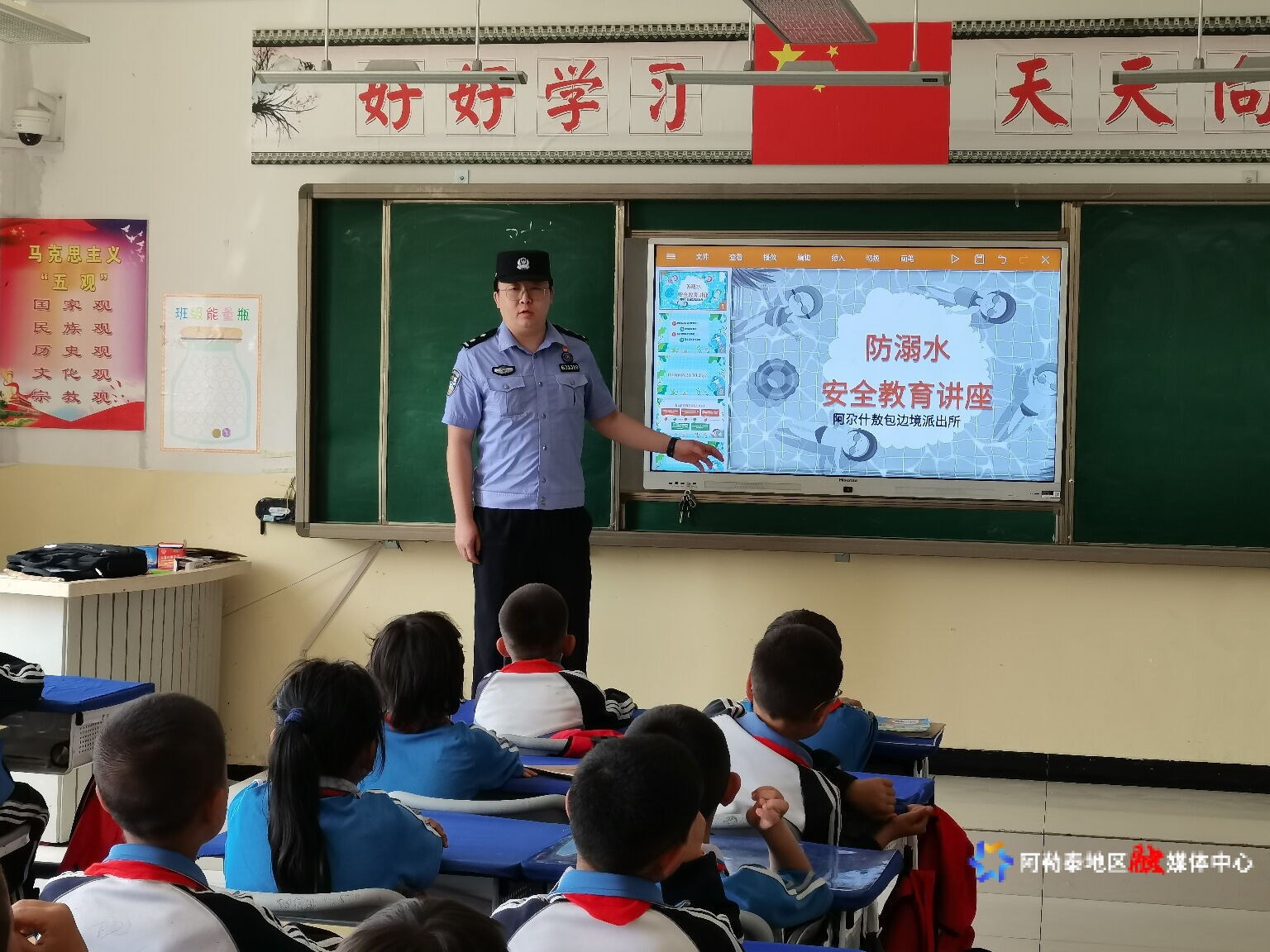 阿勒泰新闻网-阿勒泰地区融媒体中心(记者 古扎丽·阿布都热西提 通讯员 闫骞)6月4日,阿勒泰边境管理支队阿尕什敖包边境派出所民警走进辖区牧业寄宿学校,举行防诈骗、防溺水宣传活动。