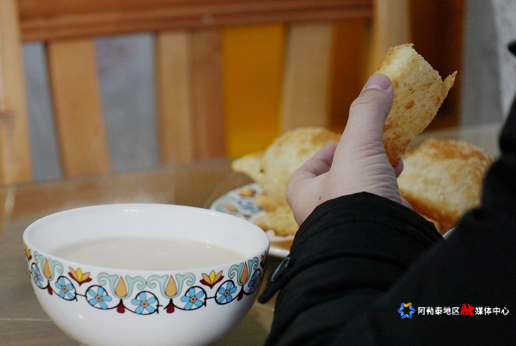 在阿勒泰人以往披星戴月的游牧生活中,喝奶茶可以促进肉食的消化,冬天御寒,夏天解渴。