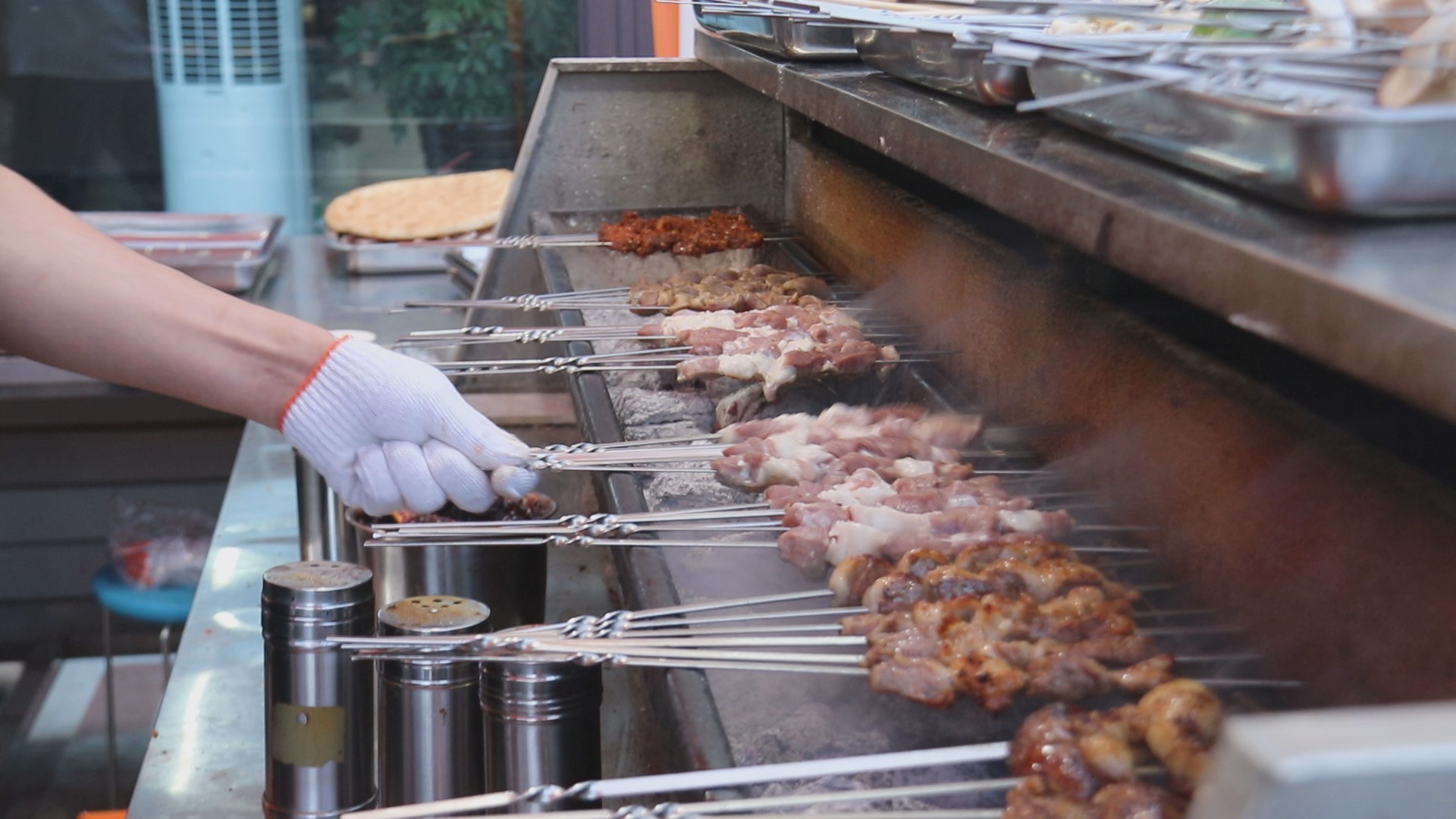 6月11日,明珠夜市烟火升腾,烤架上羊肉串滋滋冒油,孜然与辣椒面在炭火中散发出呛香,各类美食吸引众多食客。夜色里食物香气弥漫,满街尽是热闹氛围。福海镇居民王智超说:“夜市开了,特意约上几位好友来夜市吃烧烤,吹晚风,这里不仅美食丰富,还非常有氛围感,充满了浓浓的烟火气。”