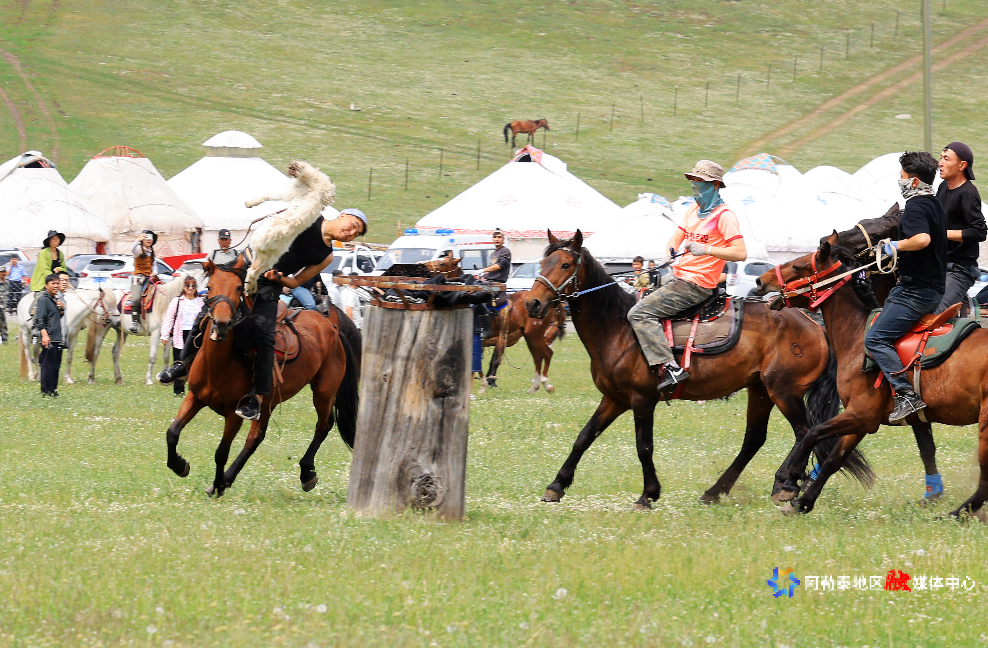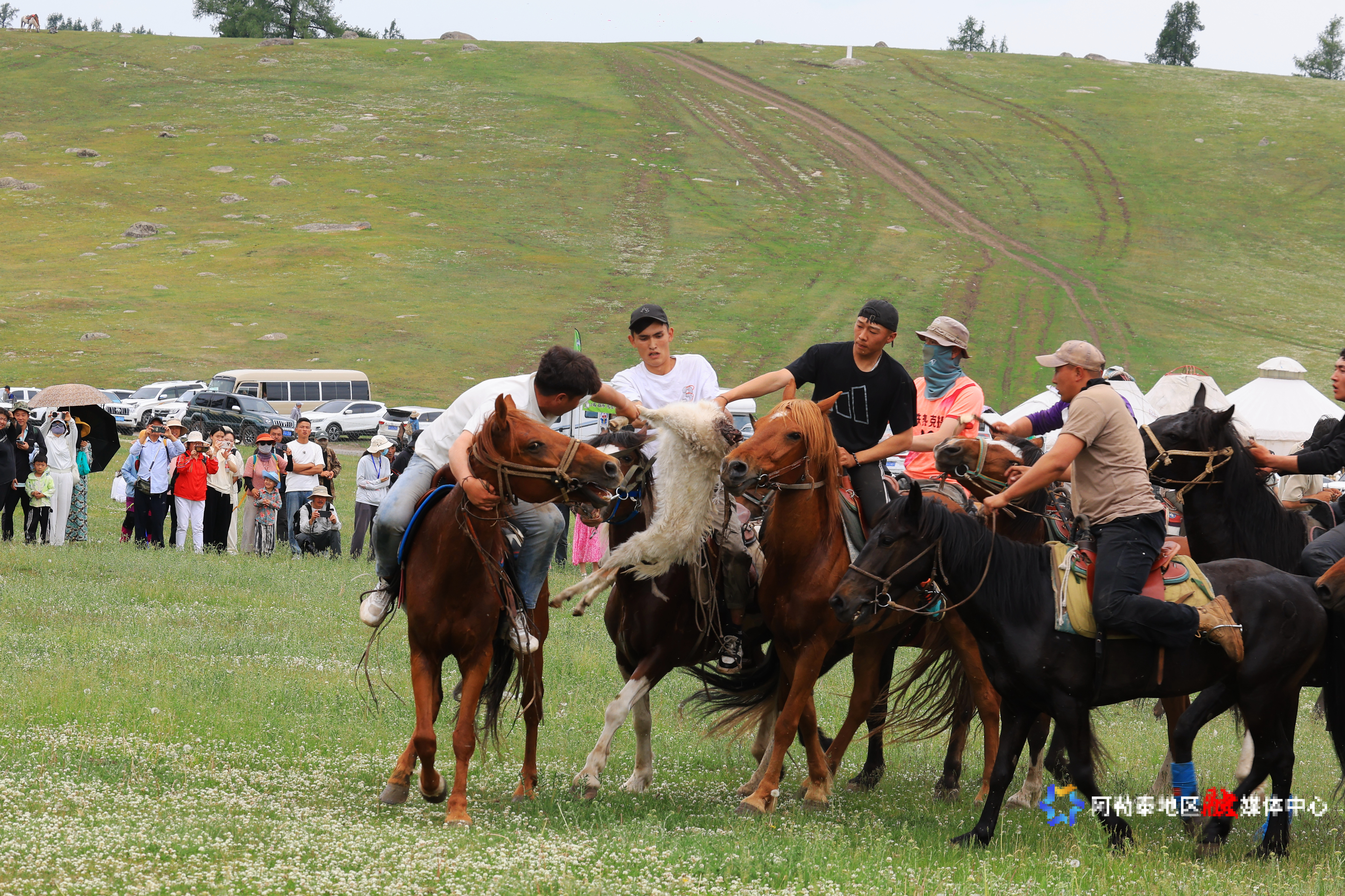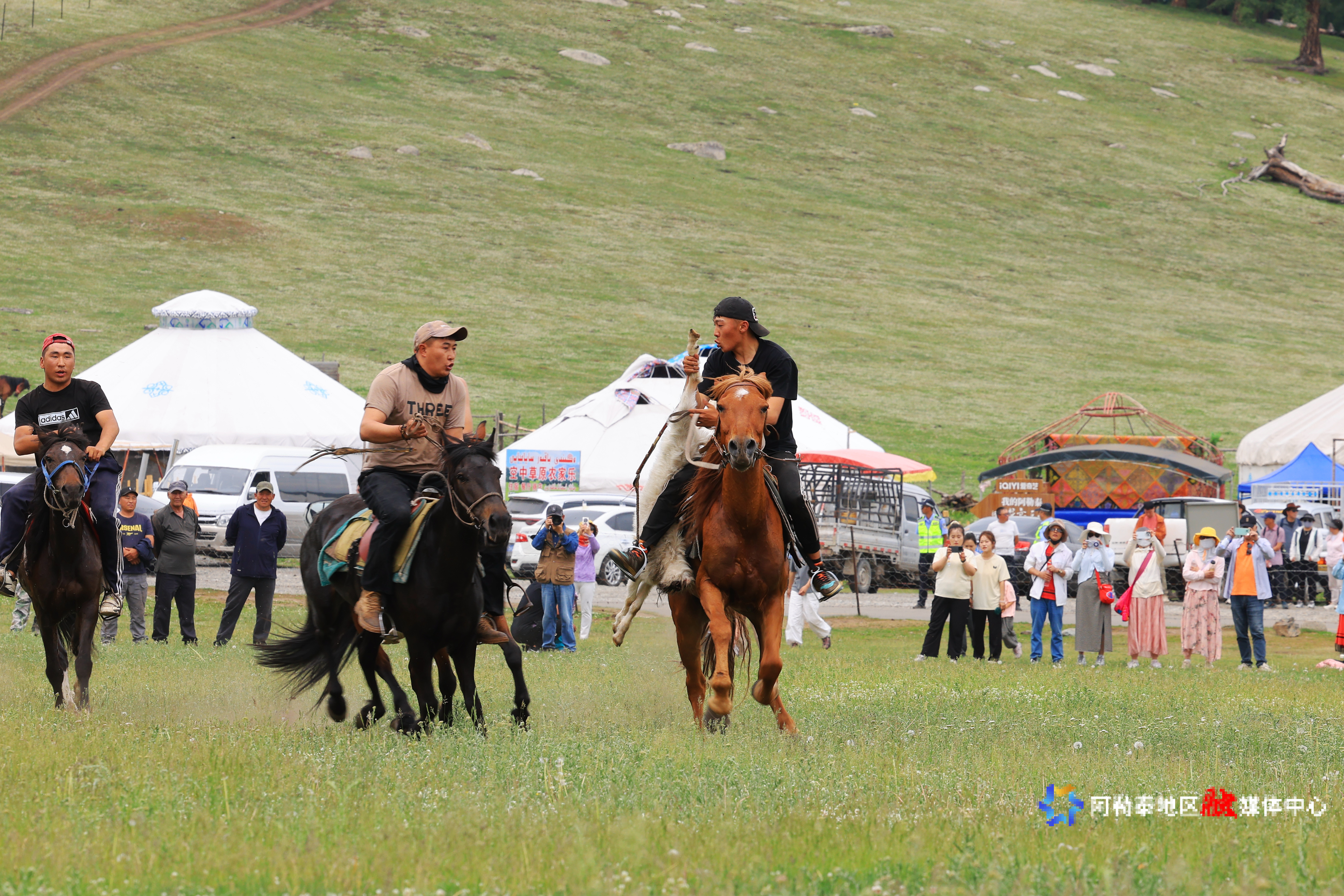 阿勒泰新闻网-阿勒泰地区融媒体中心(记者 阿尔达克·拜斯汗)6月14日,牧民们在哈巴河县铁热克提乡白哈巴村也根得空中草原参加刁羊比赛。当日,精彩的马术,刁羊等群众性体育活动吸引了众多游客前来观看。记者 阿尔达克·拜斯汗 摄