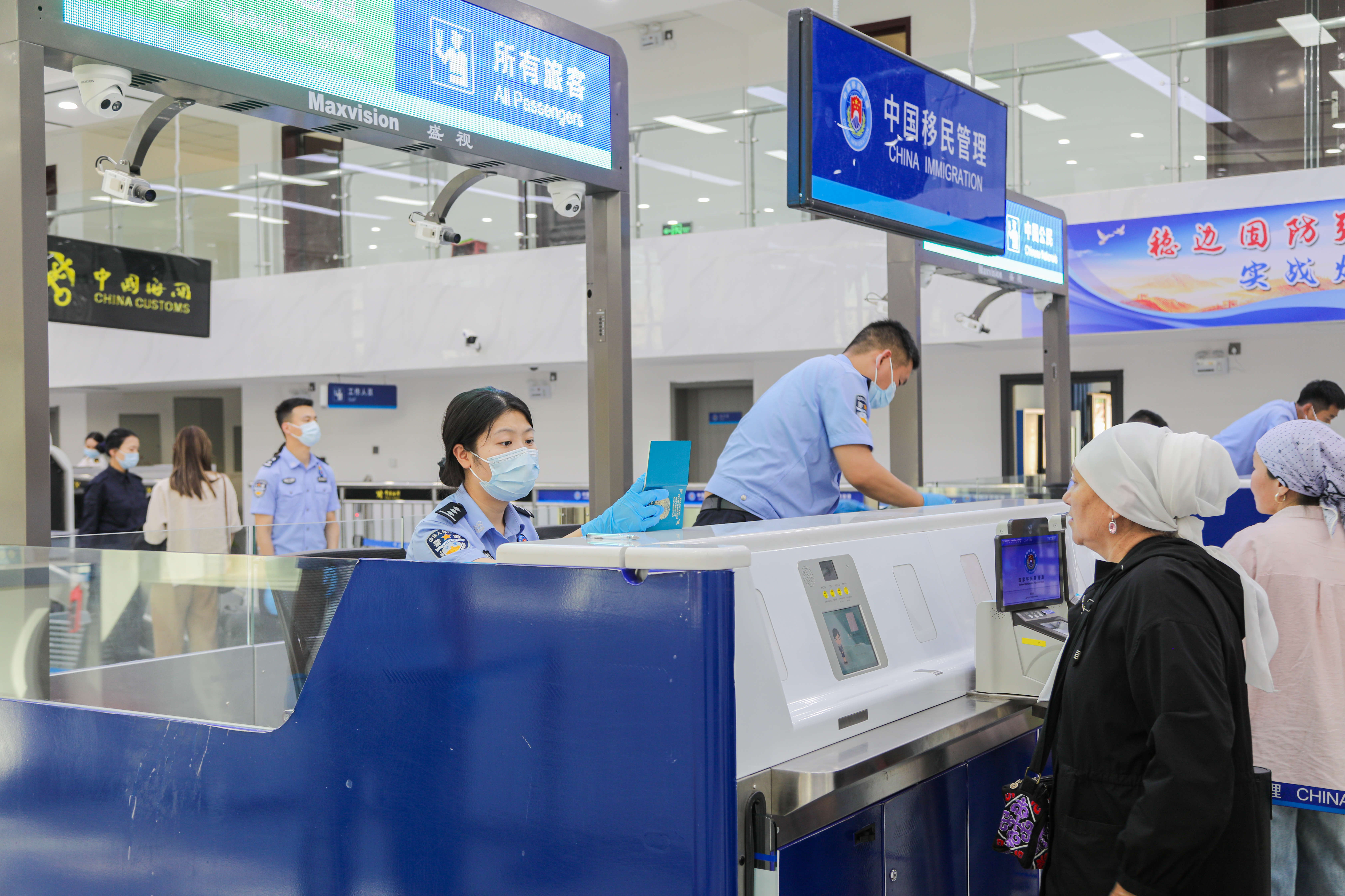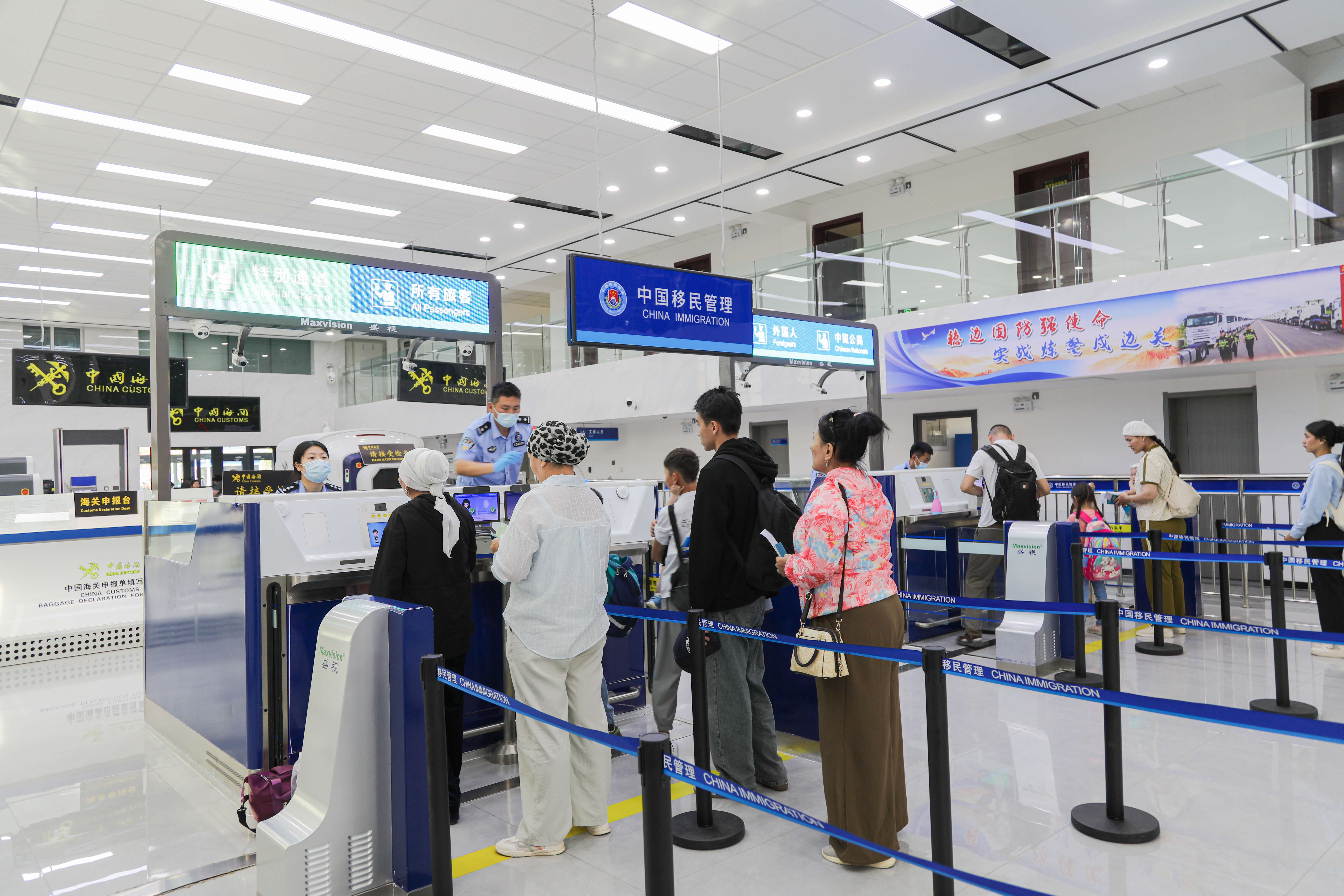吉木乃出入境边防检查站勤务值班员胡安西·波拉提别克说:“为应对客流高峰,我们持续优化通关举措,在严守国门安全底线的同时,为跨境旅客提供更高效、更便捷、更舒适的通关体验。”