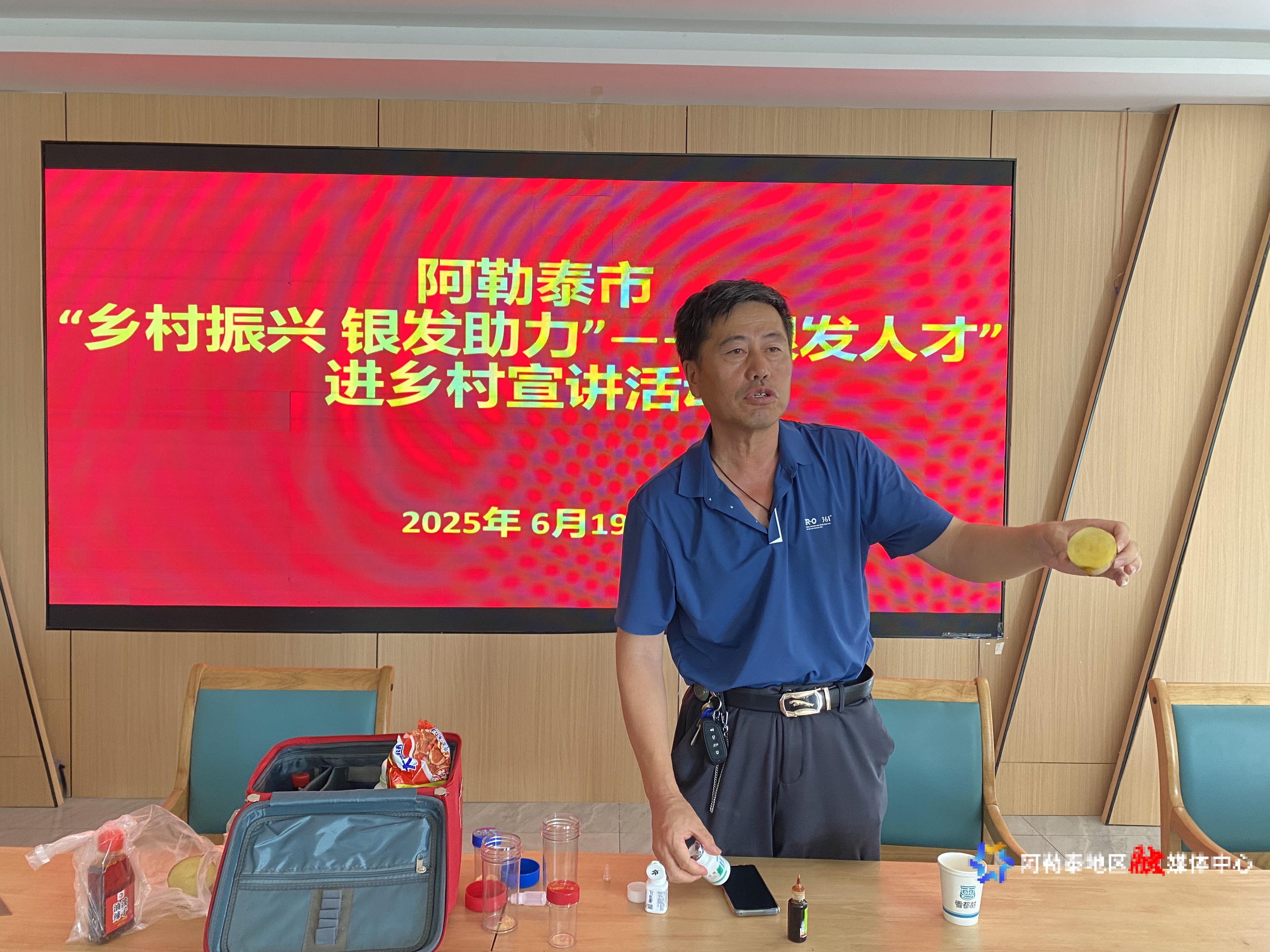 阿勒泰新闻网-阿勒泰地区融媒体中心(记者 古扎丽·阿布都热西提 阿丽娜·阿依登)6月19日,由地委老干部局主办的“乡村振兴 银发助力”——“银发人才”进乡村宣讲活动在阿勒泰市雪都村开展。退休老专家们以丰富经验与专业知识,为乡村发展注入强劲“银发力量”。