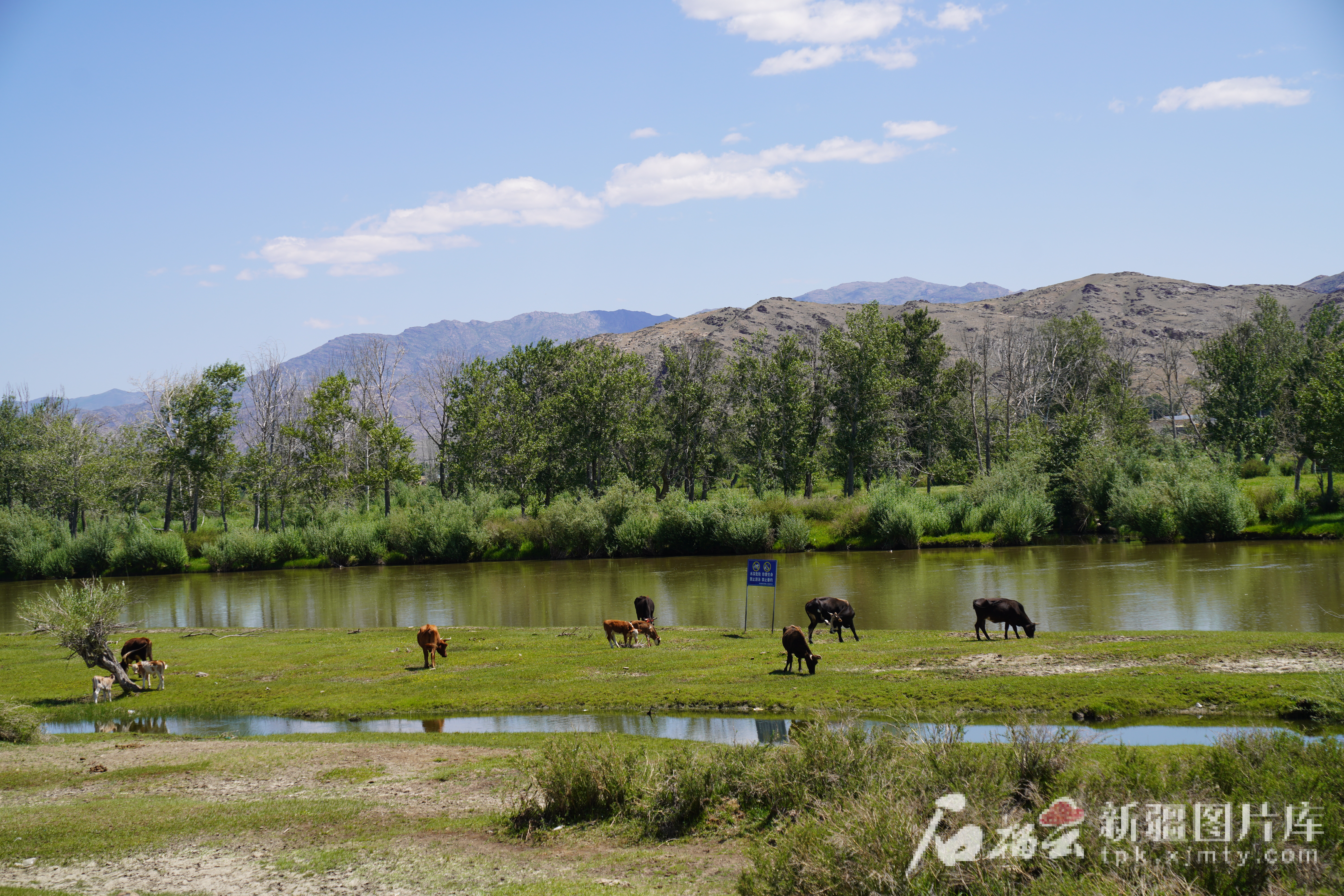 6月18日,青河县阿热勒托别镇沃巴特村自然草场上,牛在悠然觅食。李文强摄