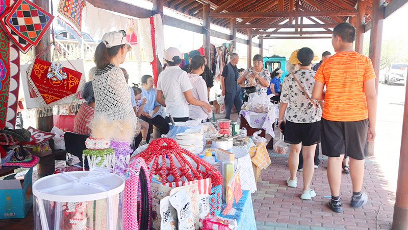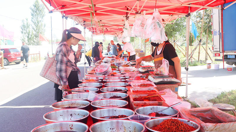 “在此次集市活动中,我们充分利用哈太村独特的交通区位优势,由村党支部引领,支部党员带头协调服务,整合村民商户、流动商户等资源,展销特色农产品、手工艺品等,既盘活了乡村经济,又凝聚起浓浓的烟火气,让村民在家门口增收致富,也为周边群众打造了一个充满乡土温度的消费场景。”布尔津县窝依莫克镇党委委员、组织委员慕容哲说。
