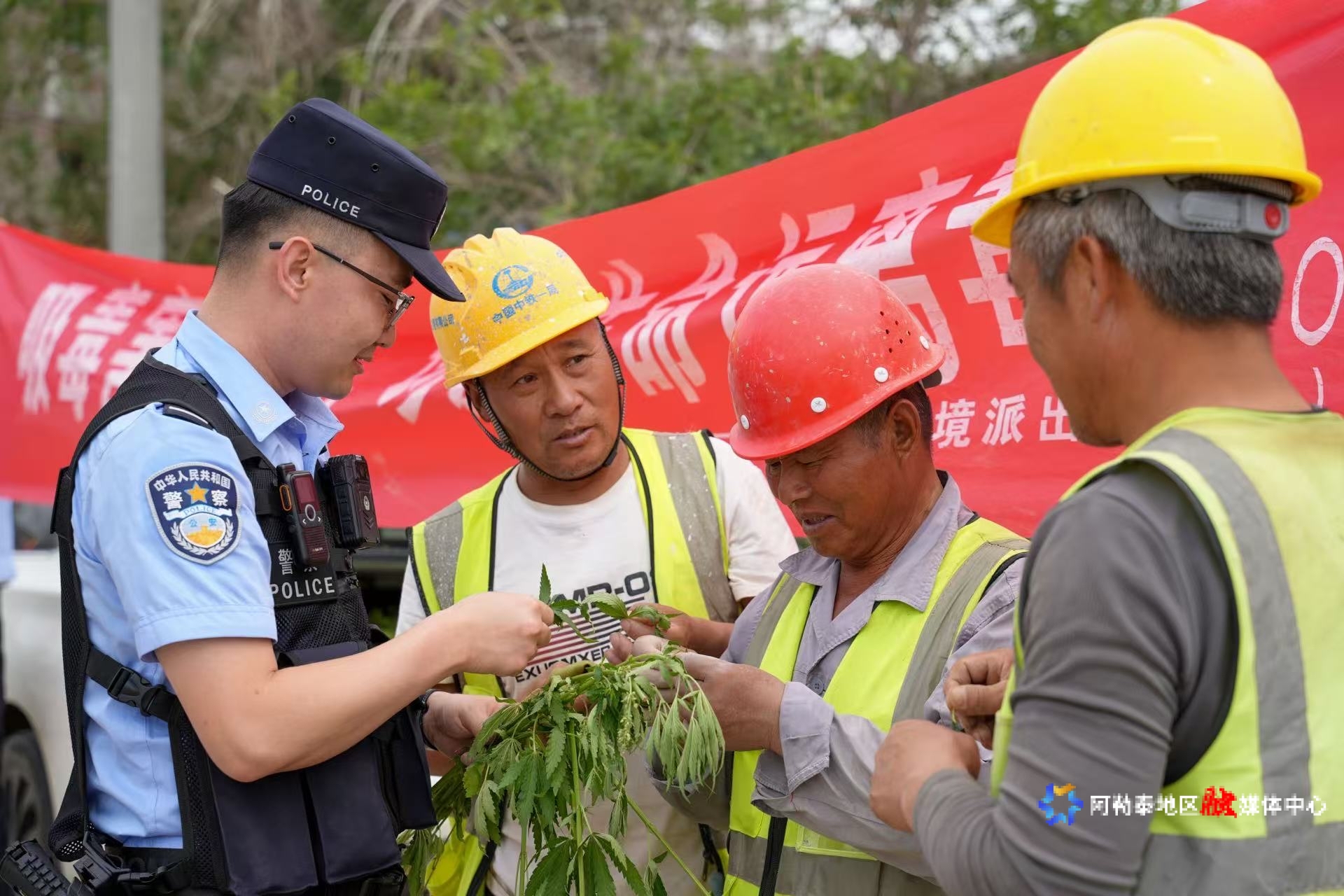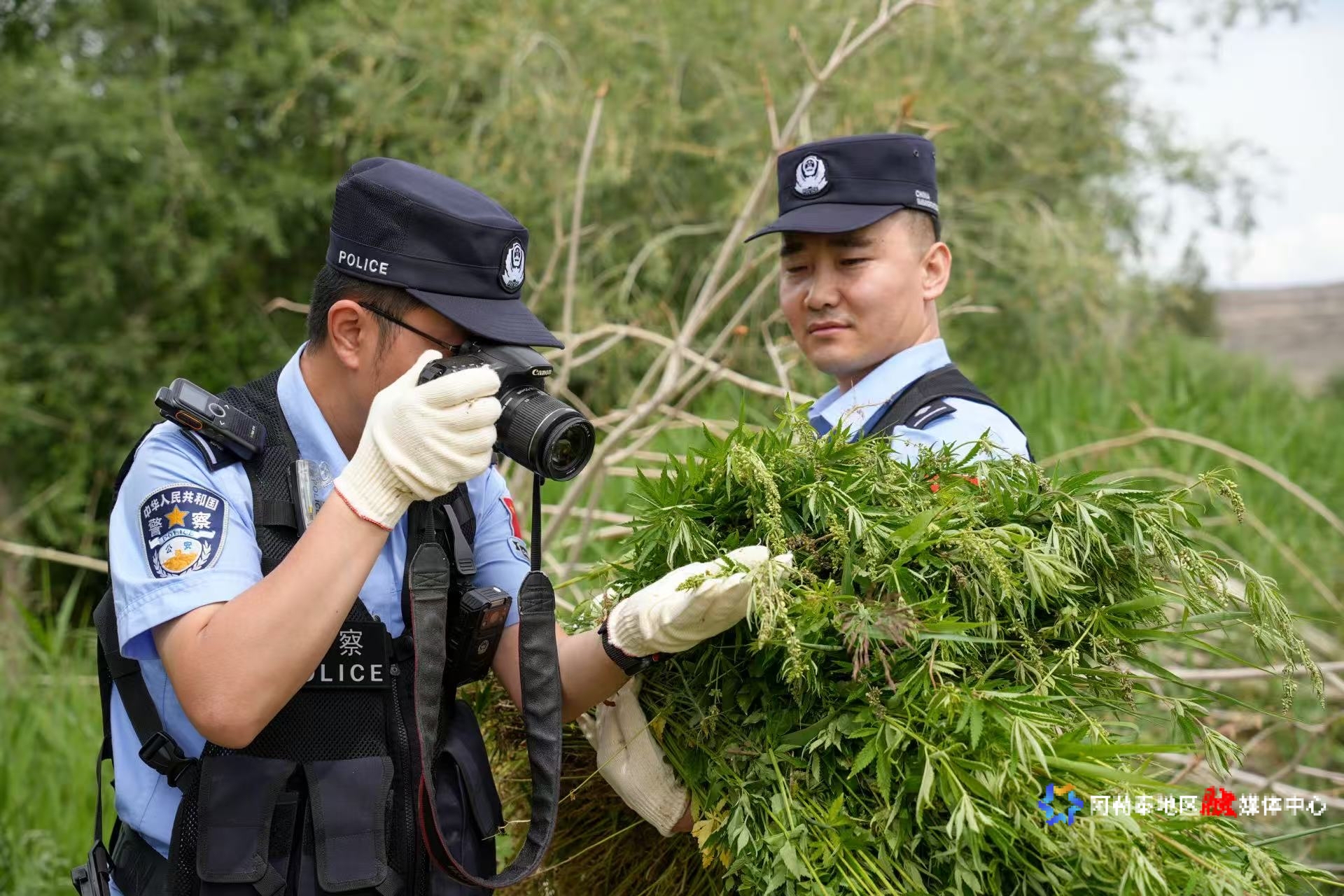6月23日,新疆阿勒泰边境管理支队阿热勒边境派出所民警在开展巡逻和入户走访时,发现路边农田水渠旁有疑似大麻的绿色植物,经仔细比对,确认其为野生大麻。为消除毒品原植物,该所组织民警共铲除野生大麻原植物幼苗5000余株,真正做到把毒品原植物“斩草除根”。