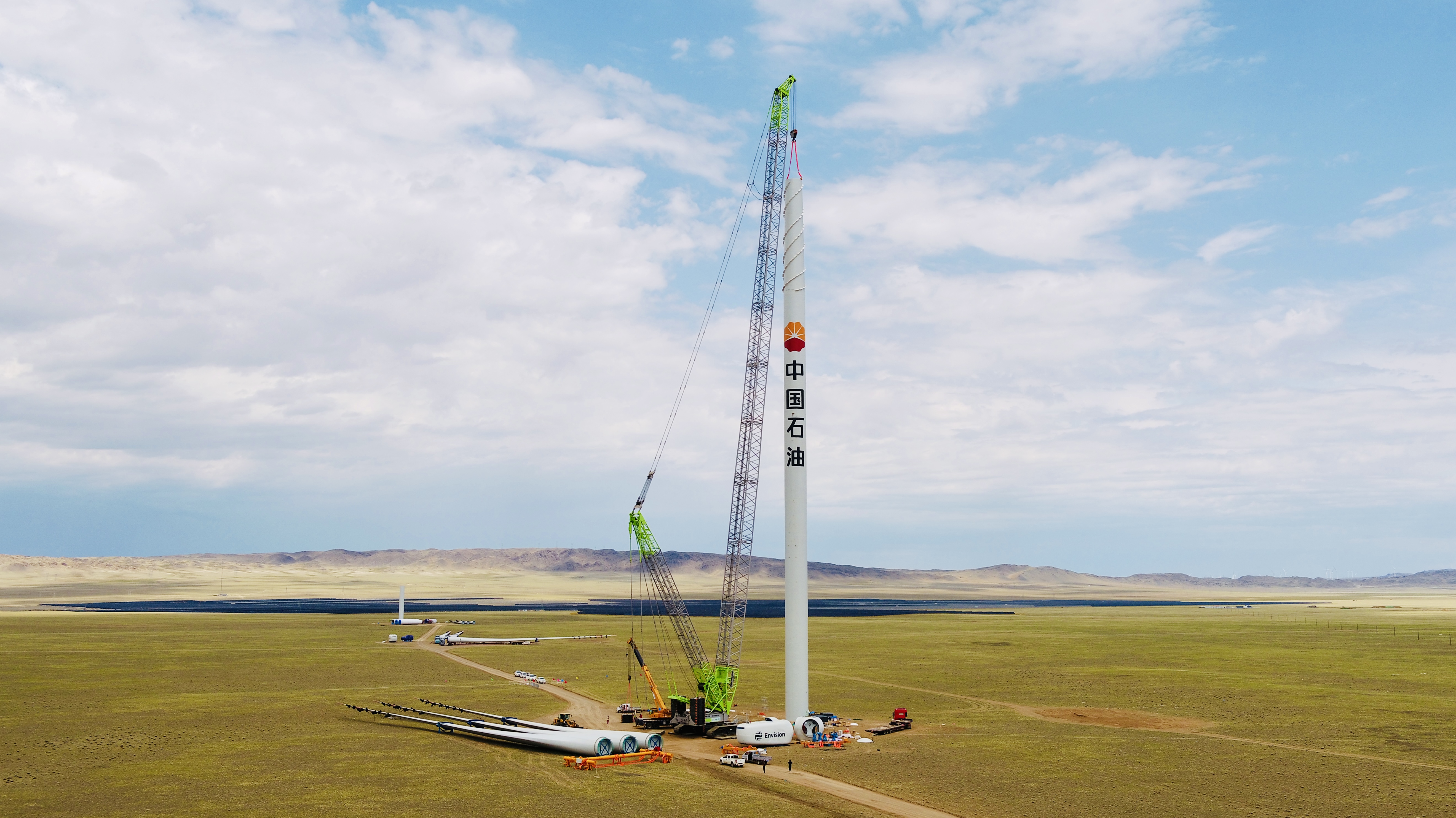 新疆油田电力公司党委委员、副经理何旭表示:“我们将在9月30日前完成风机的安装,项目建成后,每年可发绿电19.3亿千瓦时,减少二氧化碳排放160万吨。这对推动地方经济社会发展、改善油田和地方用能结构、促进绿色低碳转型具有重要的意义。”