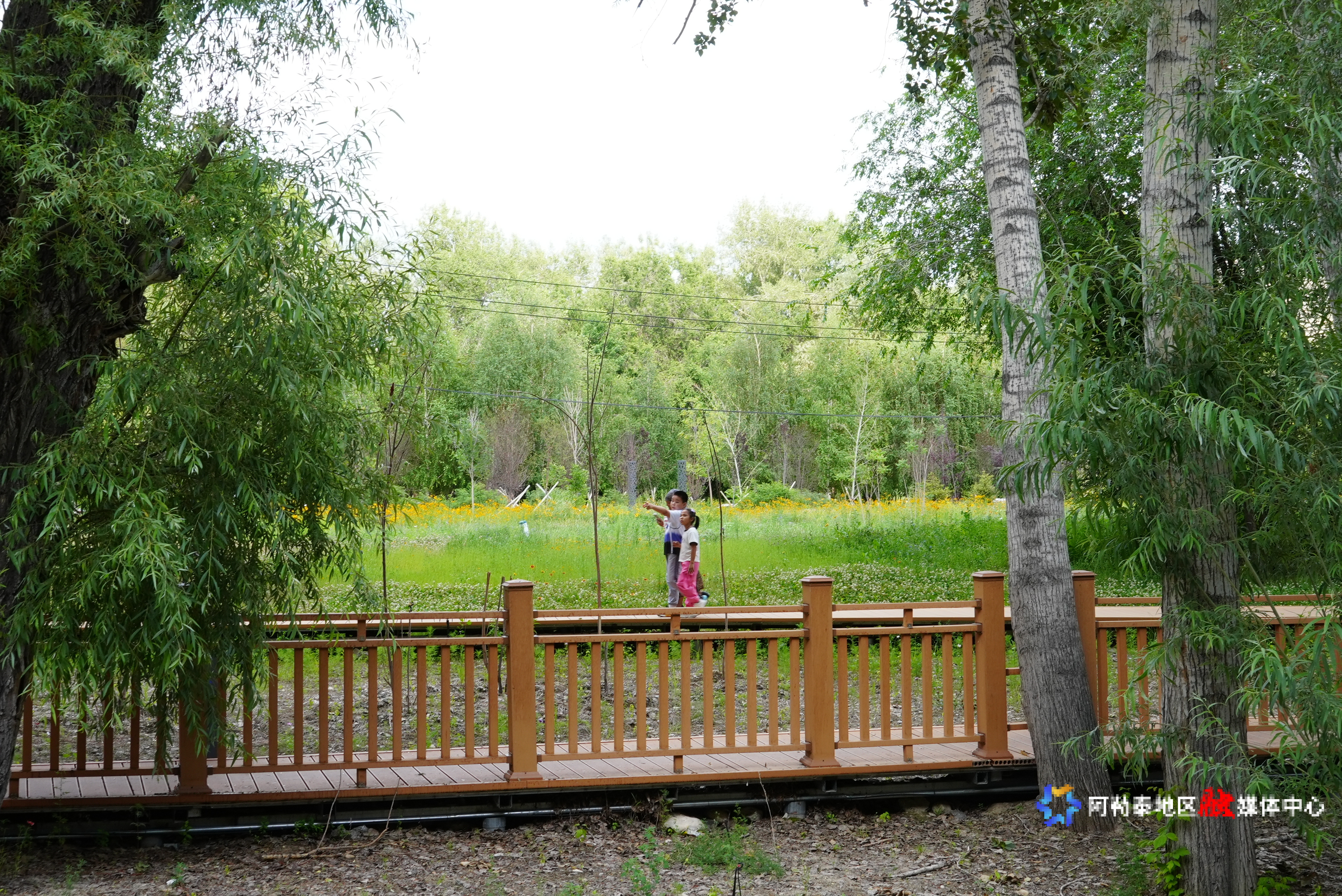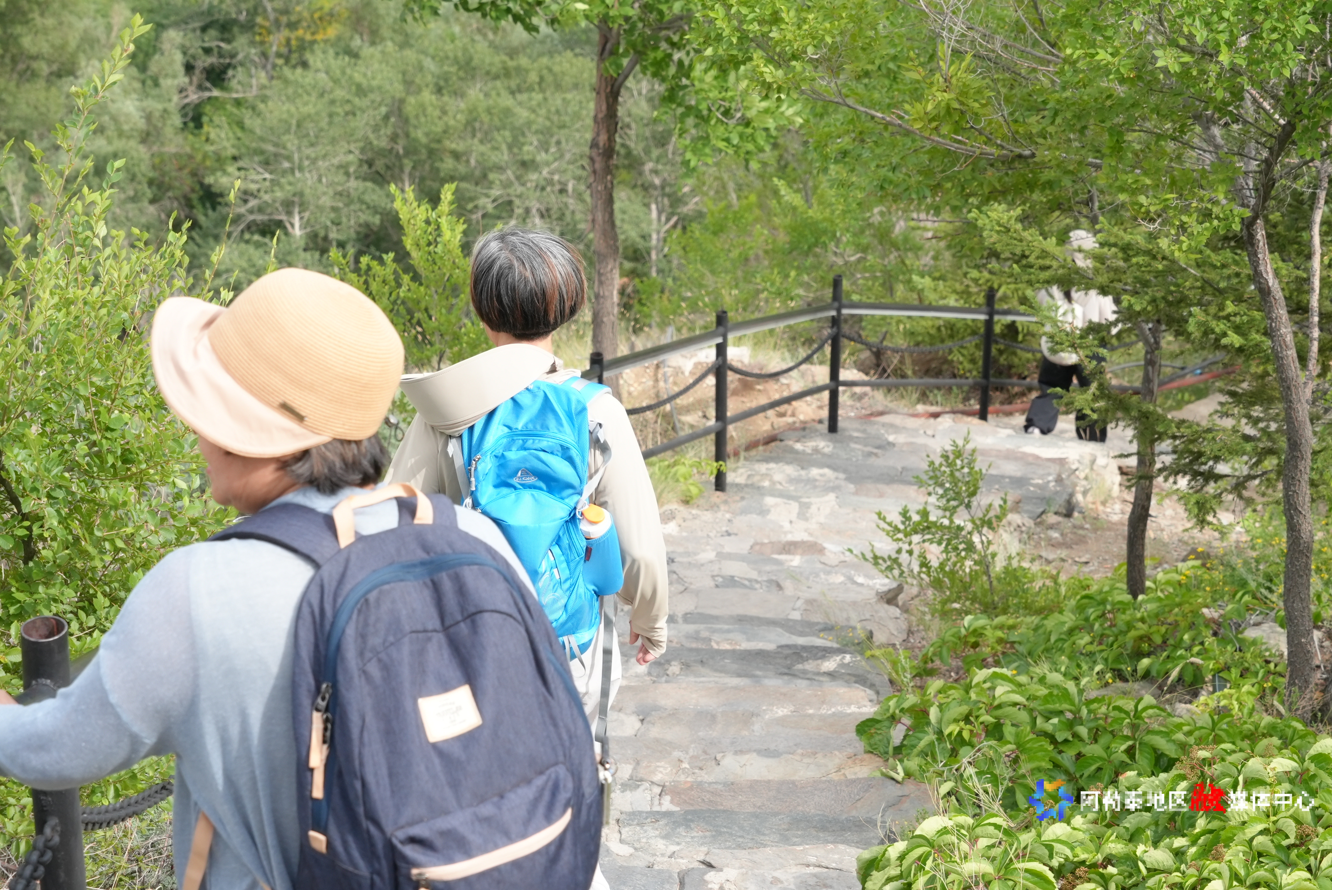 6月27日,正在阿勒泰市驼峰景区游玩的老人和孩子。