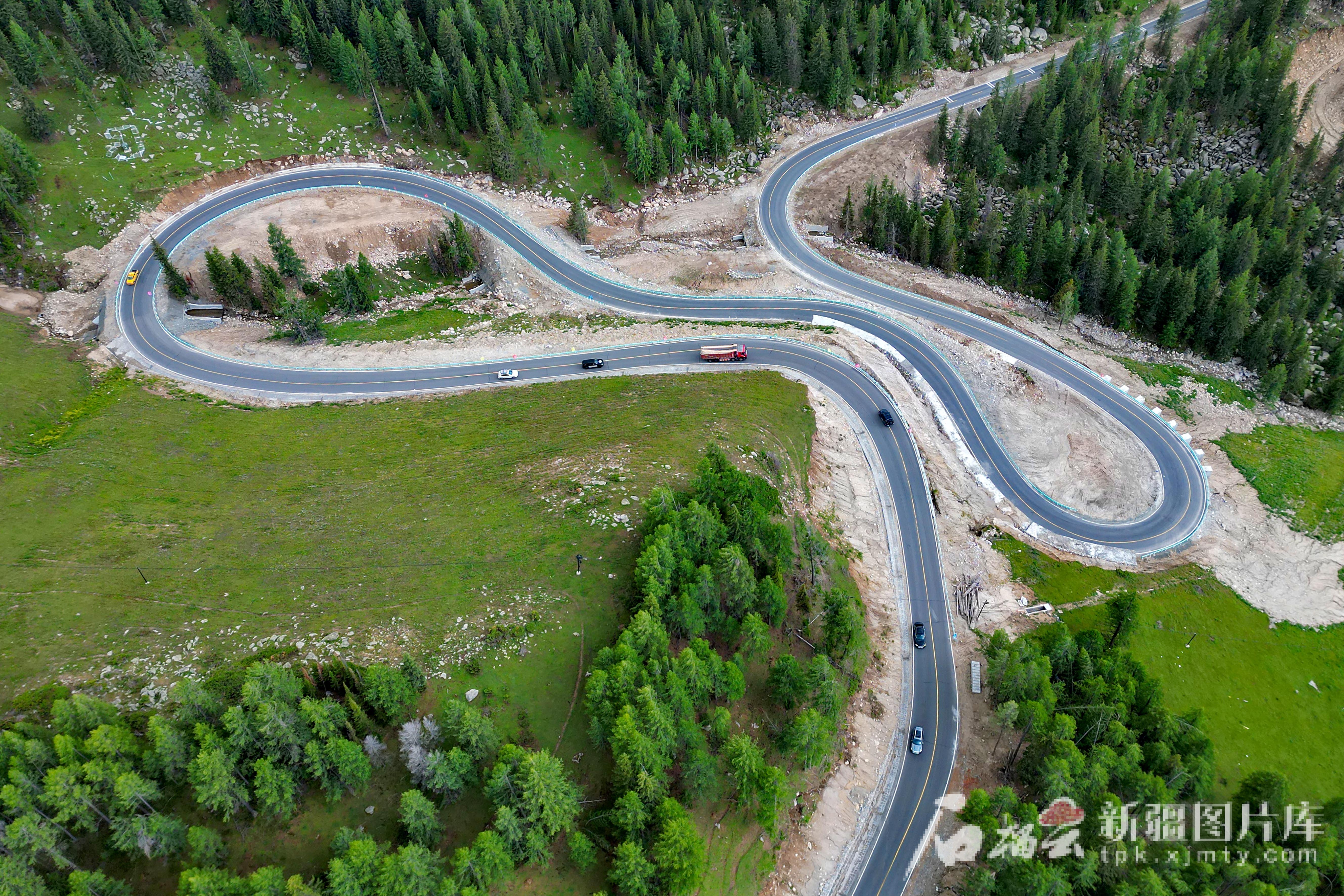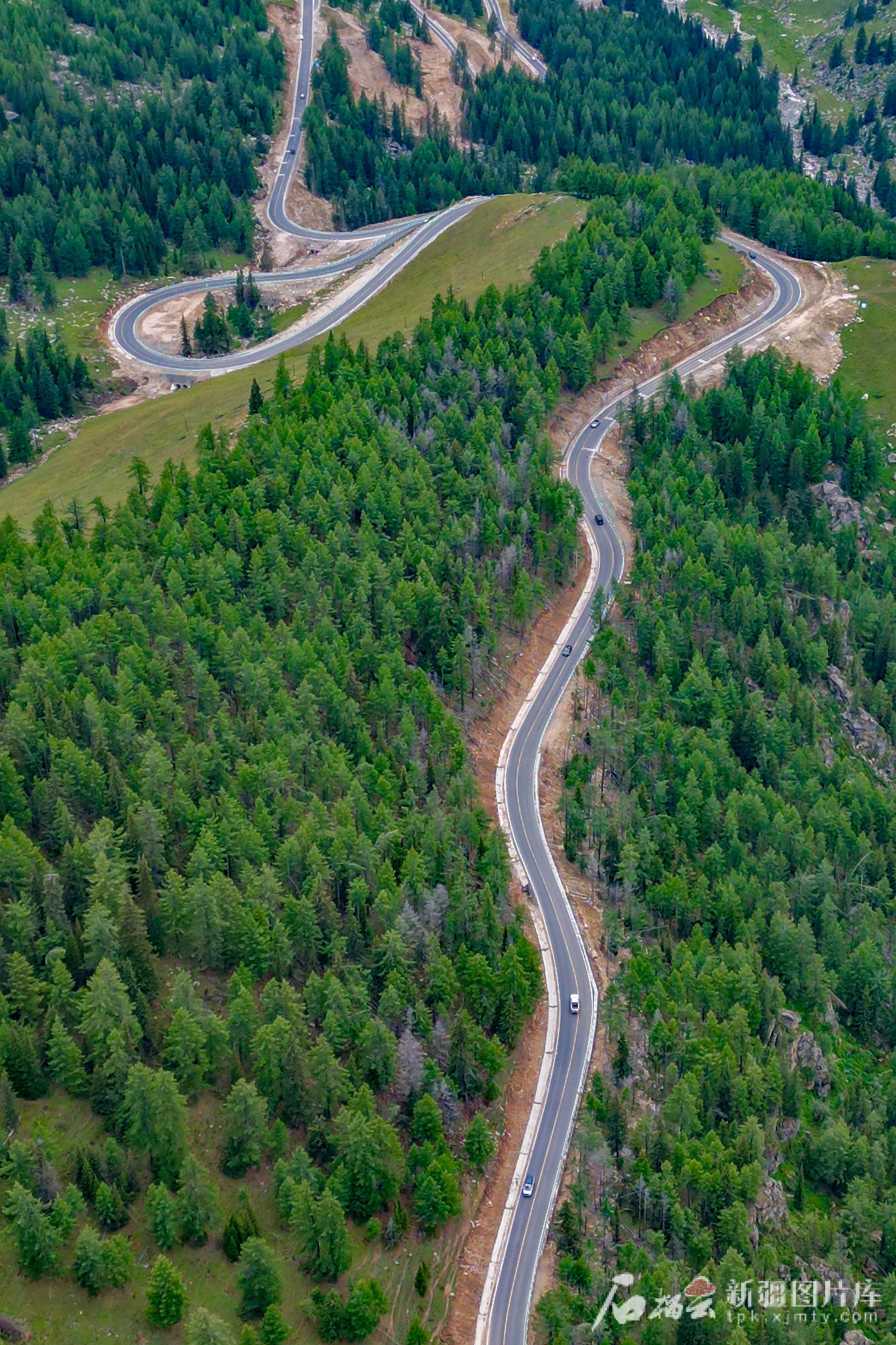 7月1日,车辆在蜿蜒的阿禾公路上行驶。