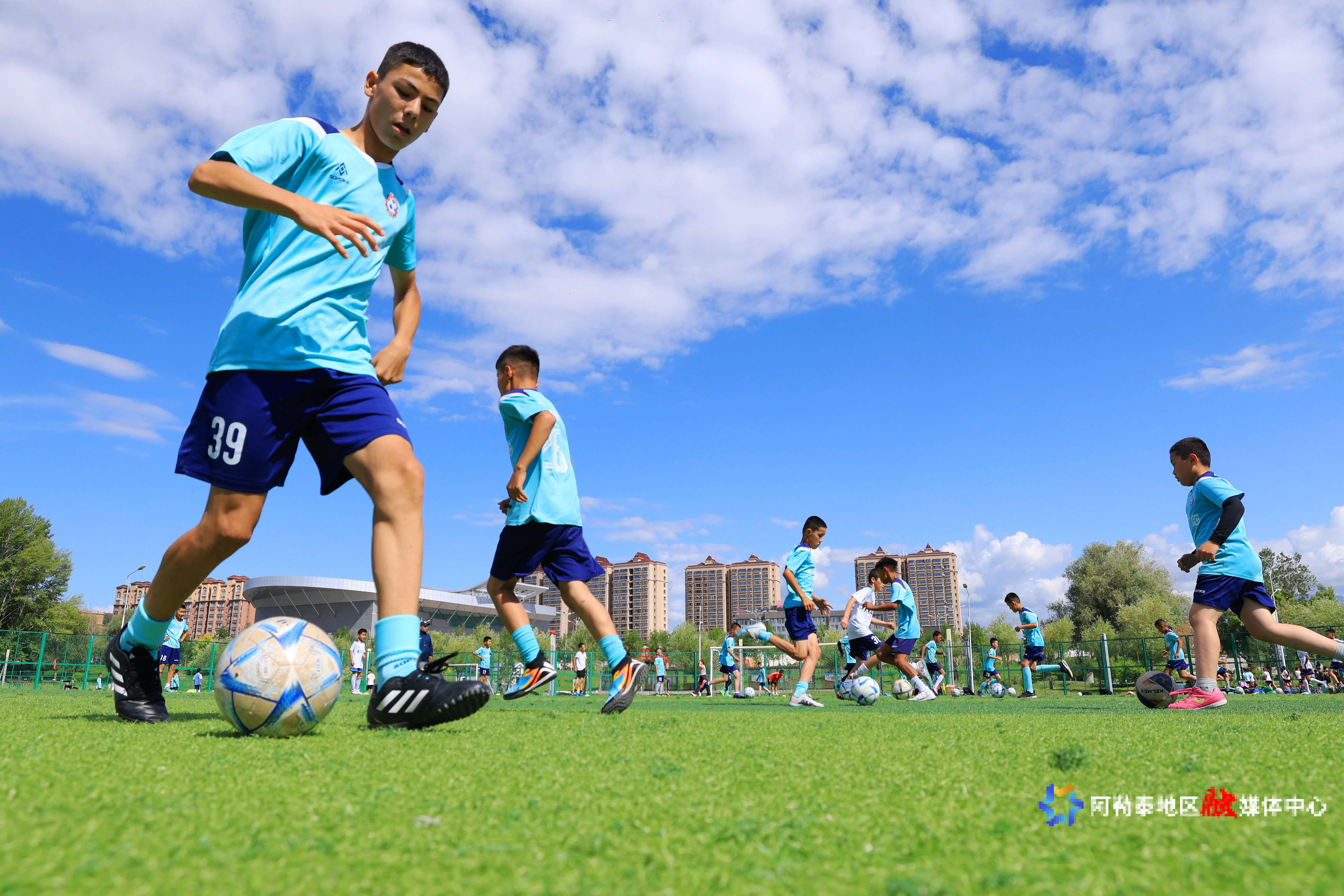 2025年7月2日,阿勒泰市小朋友们正在进行足球训练。记者 阿尔达克·拜斯汗 摄