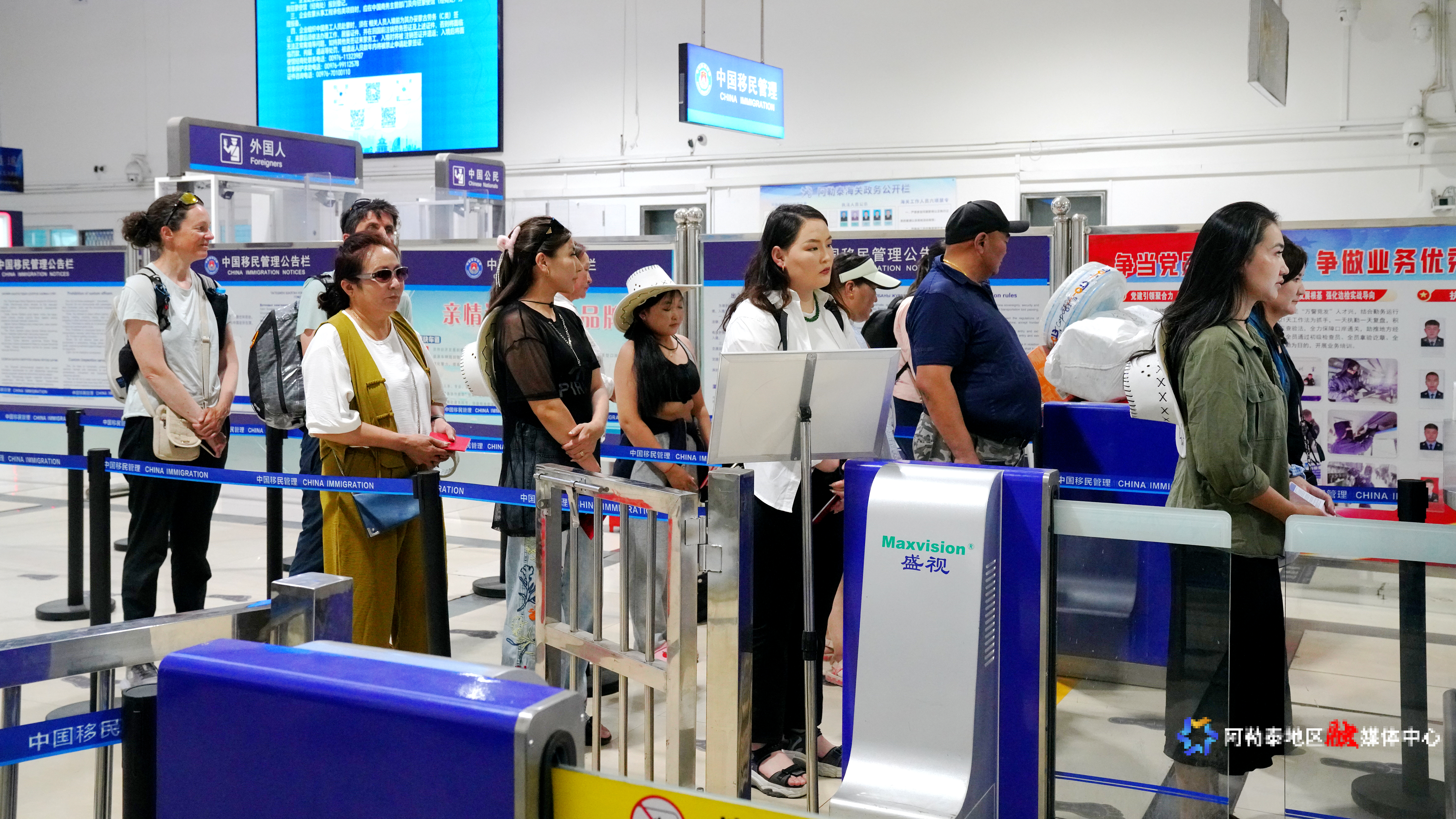 当日,记者在吉木乃口岸看到,口岸旅检现场秩序井然,旅客们在边检民警引导下有条不紊进行入境前身份核验等手续。今年以来,中哈两国人员跨境旅游、贸易交流等活动日益频繁,大家对口岸高效通关流程和暖心服务举措赞不绝口。
