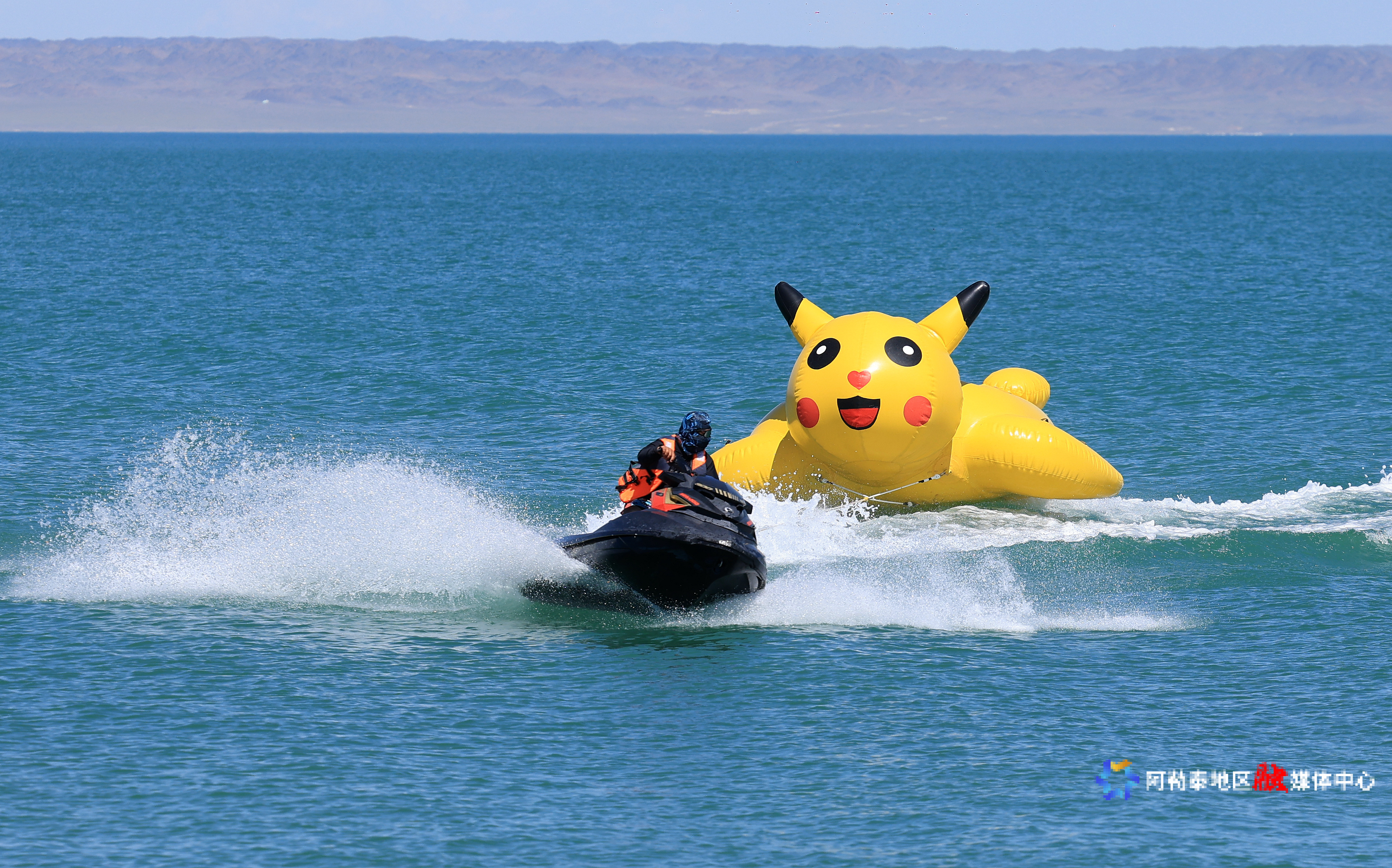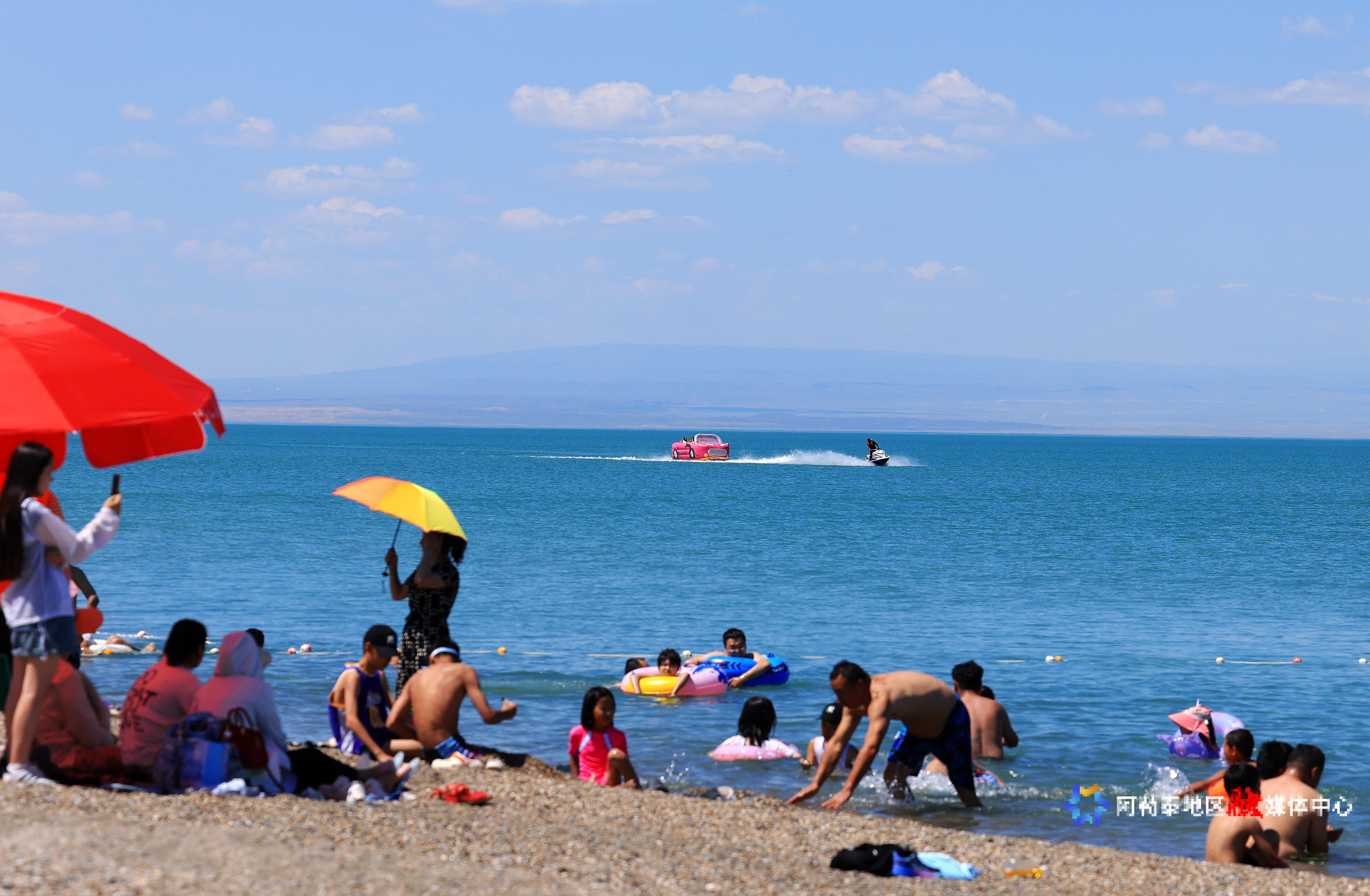 阿勒泰新闻网-阿勒泰地区融媒体中心(记者 阿尔达克·拜斯汗)7月5日,乌伦古湖波光粼粼、一望无垠,蓝天、白云、碧水交相辉映,让人仿佛置身于绝美的山水画中。近处,一艘艘五颜六色的皮划艇、桨板、游船来回穿梭,人们悠闲自在享受戏水乐趣。远处,摩托艇冲浪引得游客尖叫连连。