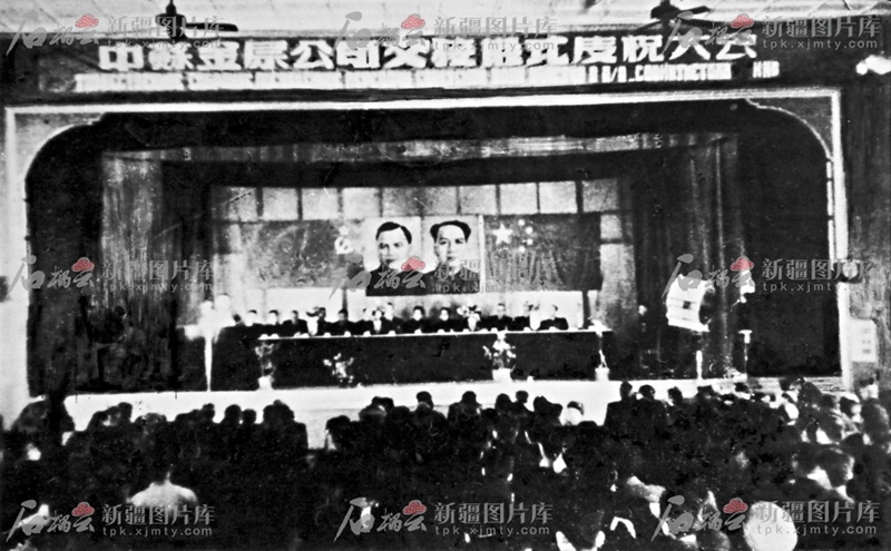 1954年12月30日,中苏金属公司苏联股份移交仪式庆祝大会会场。(来源:新疆图片库提供)