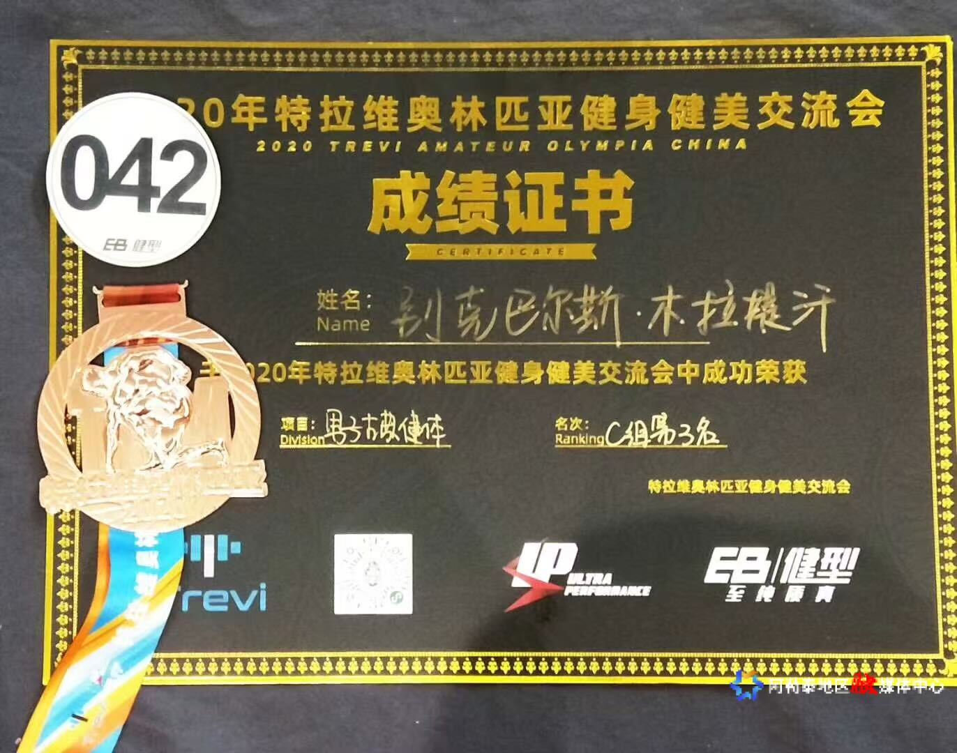 别克巴尔斯曾是健身健美赛场上的闪耀之星。18岁那年,他与健身健美结缘,冰冷的杠铃在他手中仿佛有了生命,每一次训练时的汗水滑落,都见证着他对梦想的执着追求。2018年和2019年,他连续在新疆大学生健身健美比赛中获得季军;2020年,他登上了健身健美运动员梦寐以求的特拉维奥林匹亚健身健美交流会舞台,并斩获男子古典健体项目第三名。那一刻,他仿佛看到了辉煌的未来之路。