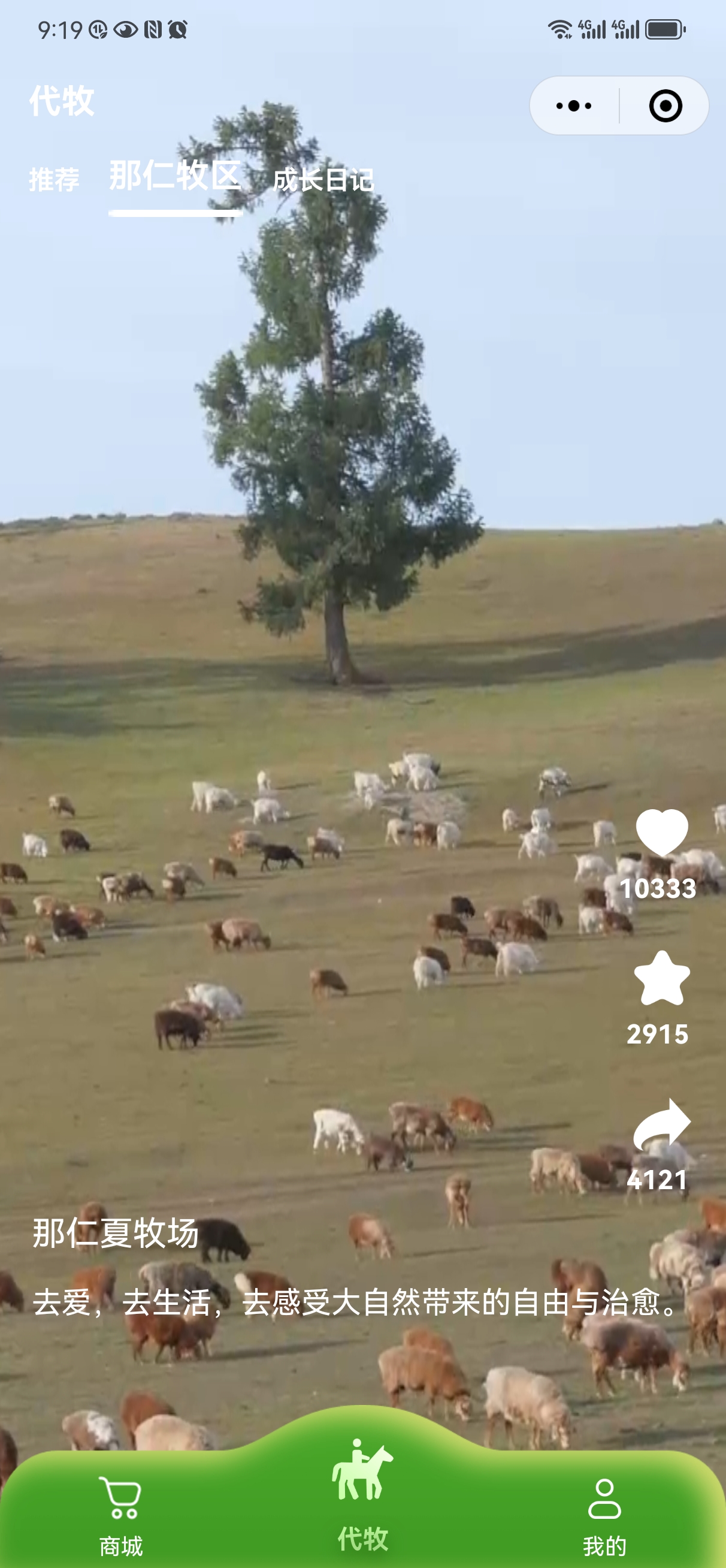 对消费者而言,线上代牧充满参与感。乌鲁木齐消费者何勇平于今年6月中旬认领了一只3个月大的阿勒泰羊,每天早餐后,他都会用微信打开“那仁夏牧场”小程序,观看阿勒泰羊实时放牧画面。通过小羊编号,他能精准查看自己的小羊活动轨迹,平台还会显示当日草原湿度、温度及小羊每日成长记录。“等到9月,我就能吃到自己的羊了。”何勇平开心地说。