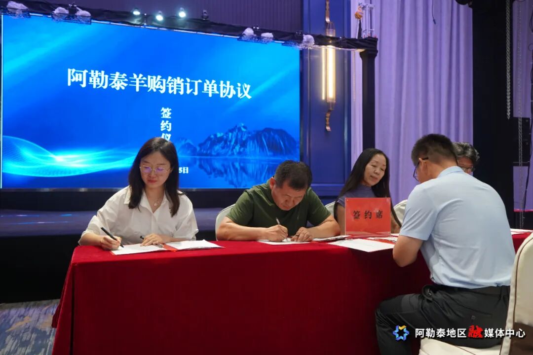 会上,通报了地区“阿勒泰羊”产业发展、区域公用品牌规划、有机认证、品牌宣传推介策划等工作情况,听取了富蕴县打造“阿勒泰羊”产业核心县的工作汇报,上海苏芫供应链集团、北京田园牧歌科技发展有限公司负责人作了交流发言,北京京美耘田科技有限公司、北京智源优选科技有限公司、华联同创(深圳)云牧记品牌运营有限公司等10家企业分别与阿勒泰农业发展集团有限公司、富蕴县国有资产投资经营有限公司、阿勒泰市喀美农牧有限公司、哈巴河县新疆农投利信智慧科技有限公司现场签订“阿勒泰羊”购销协议3.06亿元,开启了与阿勒泰携手发展的新篇章,为“阿勒泰羊”产业高质量发展再添助力。