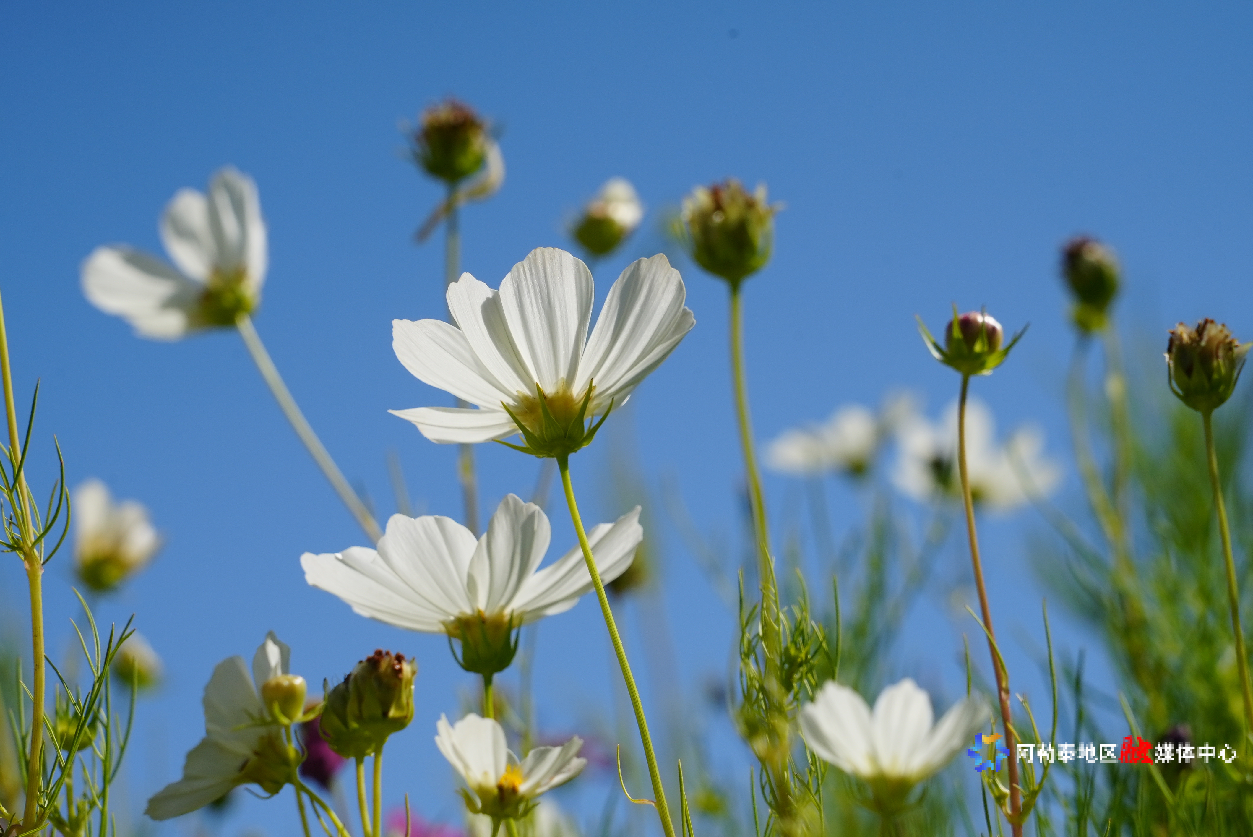 格桑花在城市街角、公园步道肆意绽放,色彩斑斓的花丛与蓝天相映成趣,宛如天然调色板。花朵小巧精致,散发淡淡清香,吸引市民和游客驻足拍照。