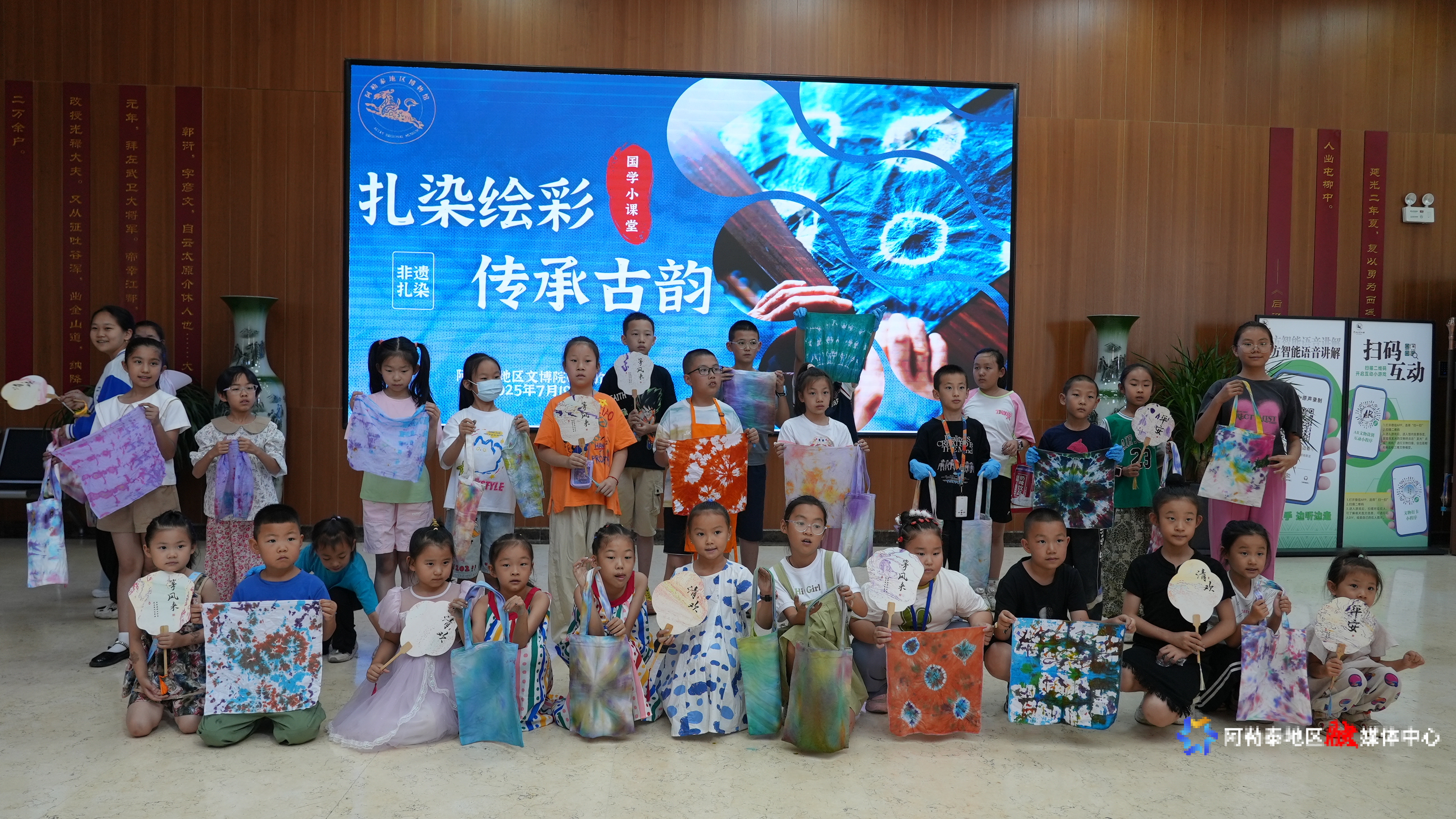 阿勒泰新闻网-阿勒泰地区融媒体中心(记者张楠实习记者巴丽江·毛里别克)7月19日,地区文博院(博物馆)举办以“扎染绘彩 传承古韵”为主题的国学小课堂,50余名青少年通过制作扎染作品,沉浸式感受传统技艺与国学文化的交融之美。