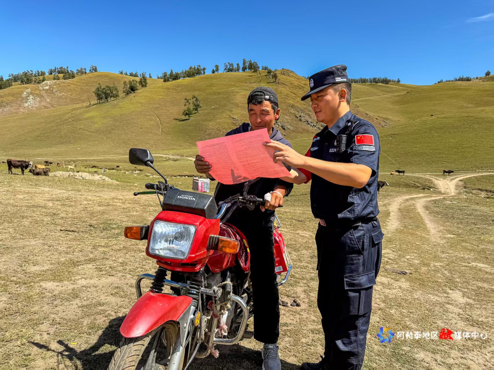 阿勒泰新闻网-阿勒泰地区融媒体中心(记者 古扎丽·阿布都热西提 通讯员 史泽雄)7月25日,阿勒泰边境管理支队冲乎尔边境派出所联合多部门组建“普法宣传队”,走进偏远山区夏牧场,开展了一场接地气、暖人心的法律法规宣传活动,让法治精神在草原深处落地生根。