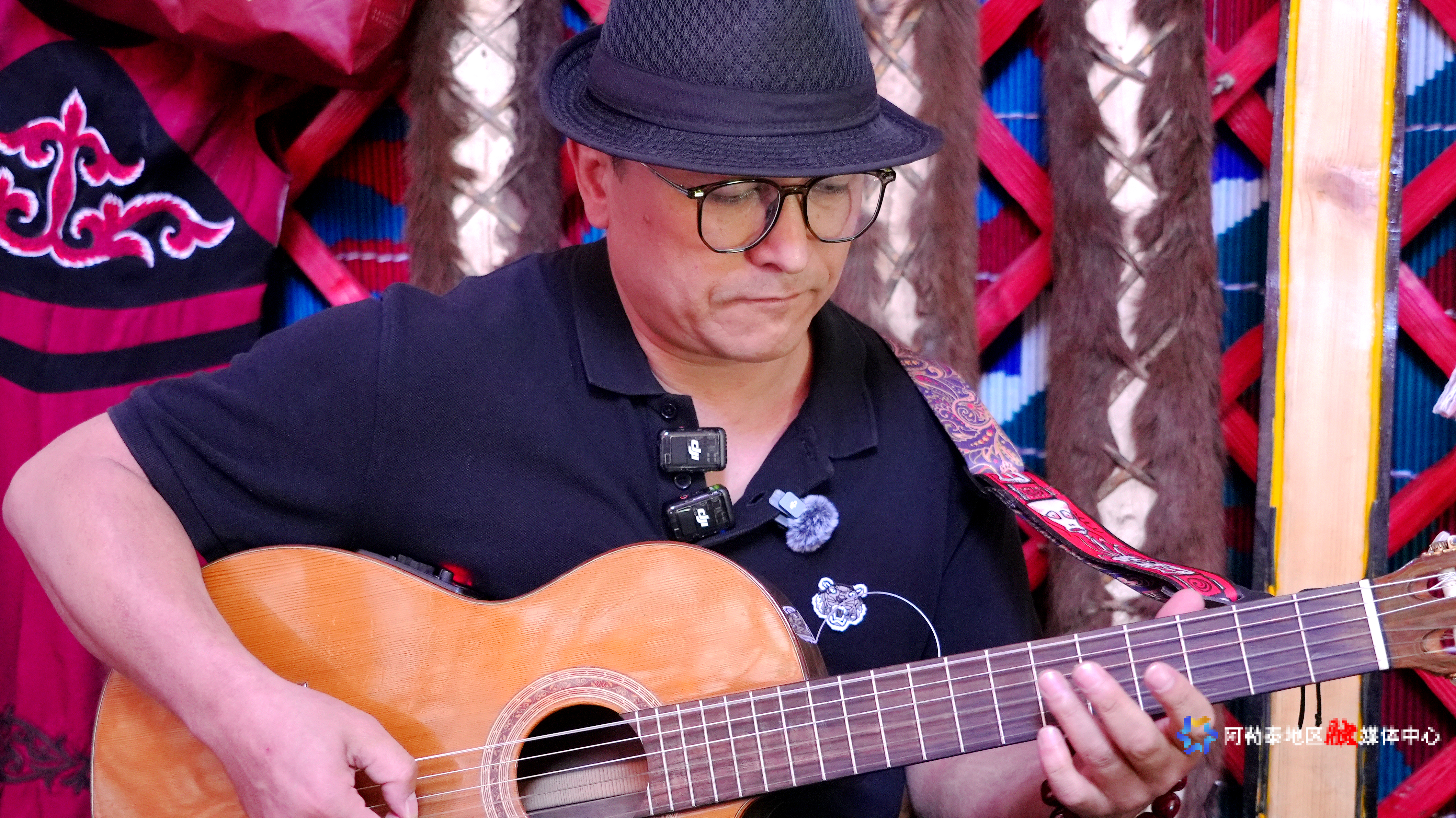 在“巴太树”下,大家共同聆听电视剧《我的阿勒泰》插曲《月光》创作者叶尔波力·阿合买提汗的弹唱。“这首歌的创作灵感来源于阿勒泰的美景。”叶尔波力·阿合买提汗说,“我们的歌曲是在美丽的大自然中创作的,是大自然照亮了我们的心灵。”